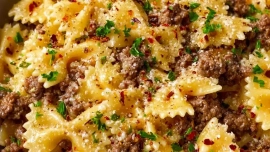 Cajun Cream Cheese Alfredo Bowties with Spiced Ground Beef