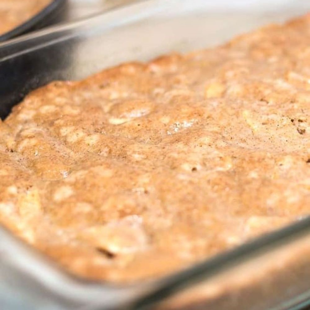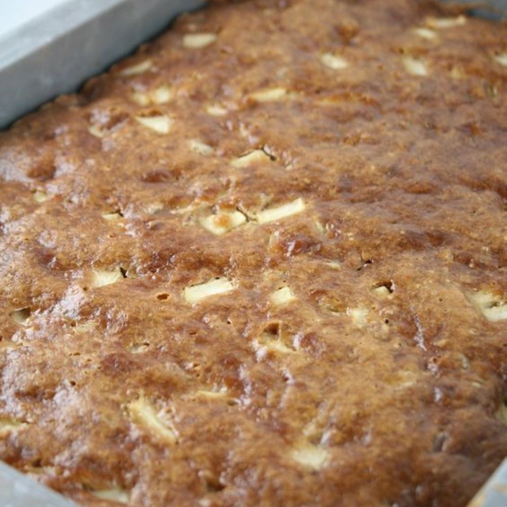 Method: Preheat oven to 185c. In a large mixing bowl melt the butter (in the microwave) Next, add in the sugar and mix well! Then, add in the eggs and milk, and beat well until completely combined. Add in the vanilla and seasoning, (raisins if using). Add the dry ingredients next, flour and baking powder, mix well, dough will be thick!! Next add in the diced apples, yes it is a lot of apple, the cake will expand! LOL! trust the process… Bake at 185c (350f) in a greased and floured pan (13x9in or 32x22cm) for 50-60 minutes or until the top is a nice golden color, and a toothpick inserted comes out clean! Serve warm, or cool, and enjoy!