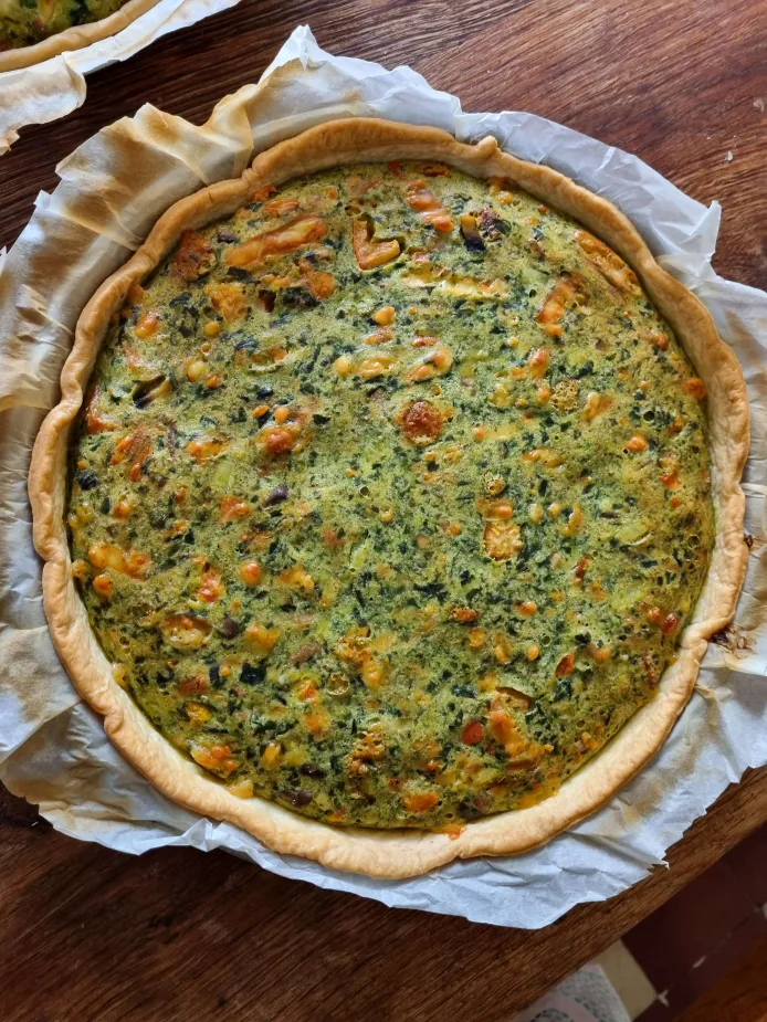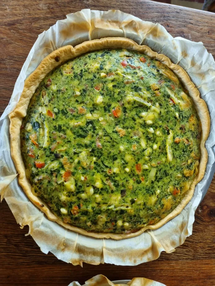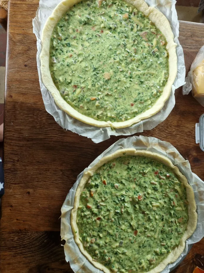| Cook time: | 1 hour (cooking the filling, and baking the quiche) |