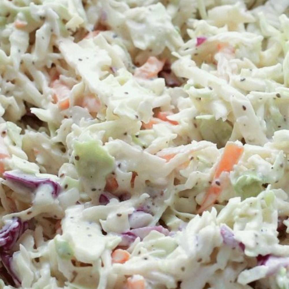 This was a staple at any family get together growing up, and through most of my life. I still make it with fond memories of my childhood. Terrific with burgers and at bbqs! This cole slaw is definitely an excellent choice year round!
