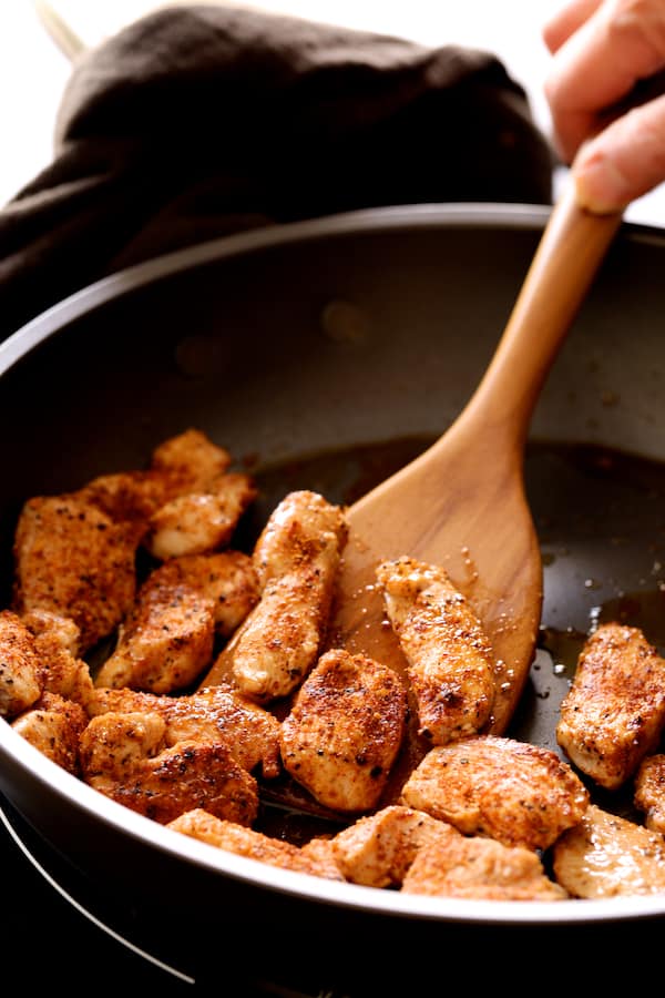 2 boneless skinless chicken breast halves – approximately 1 pound, cut into 1/2-inch strips