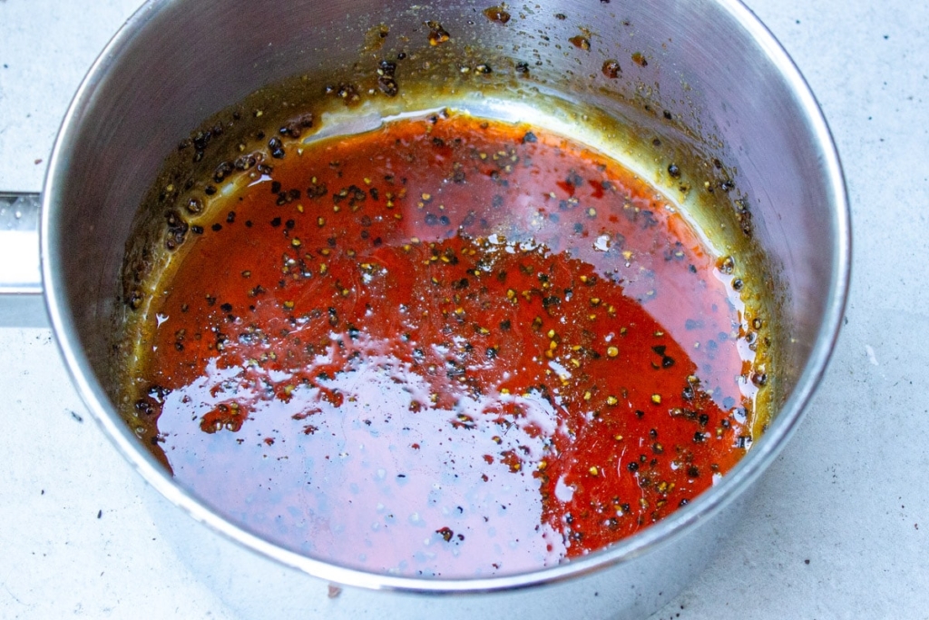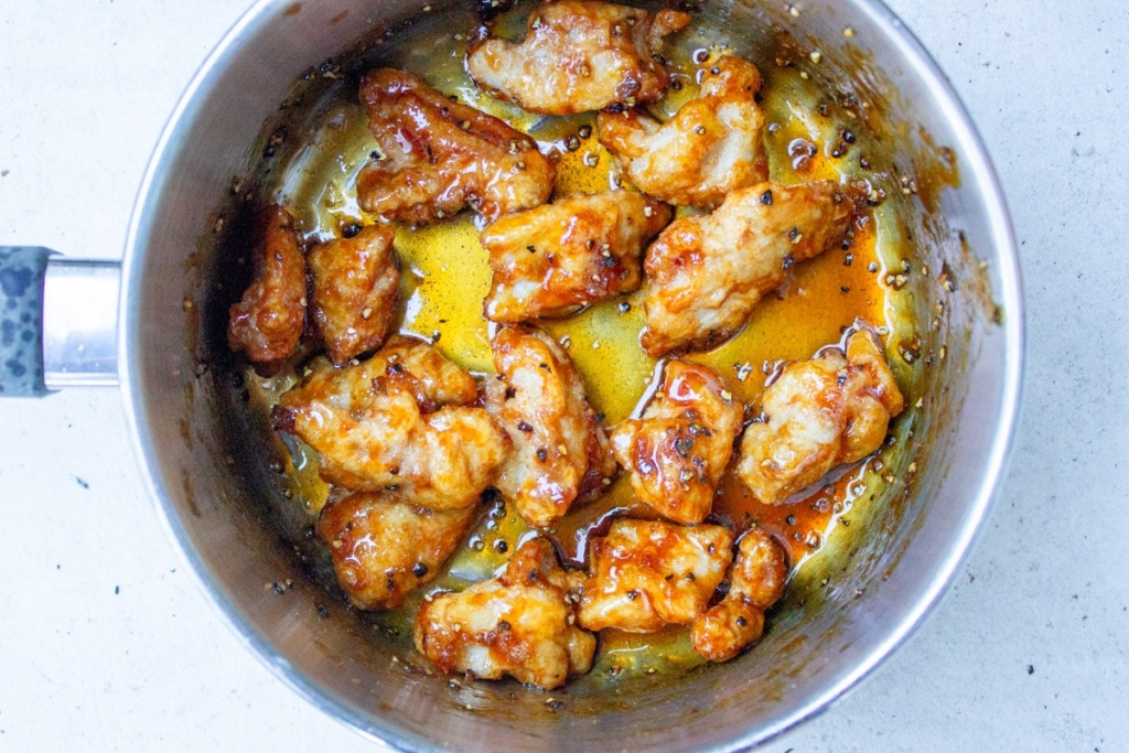 Add sauce ingredients to a pot large enough to hold all the chicken once fried.