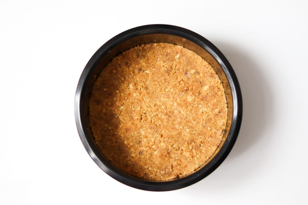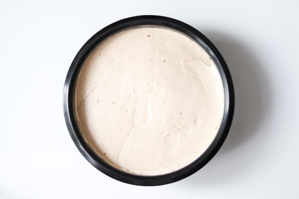 To make the cheesecake filling, whip the double cream, icing sugar and cream cheese on a high setting until the mixture holds itself (like meringue) and ripples appear. Melt the Kinder chocolate and leave to cool down. Pour the melted Kinder chocolate into the cheesecake filling with a teaspoon of vanilla extract. With an eclectic whisk, whisk the mixture until the chocolate is evenly distributed throughout the cheesecake filling. Pour the cheesecake filling into the springform tin with the cheesecake base. With an offset spatula smooth the mixture and place in the fridge for a minimum of 6 hours. Leaving to chill overnight gives you even better results.