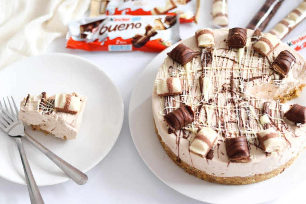 An unbelievably tasty no-bake Kinder Bueno Cheesecake! Filled with an indulgent Kinder filling, a buttery digestive and crushed Kinder bar base and topped with even more Kinder Bueno goodness. Here’s the best creamy cheesecake that is so irresistible.