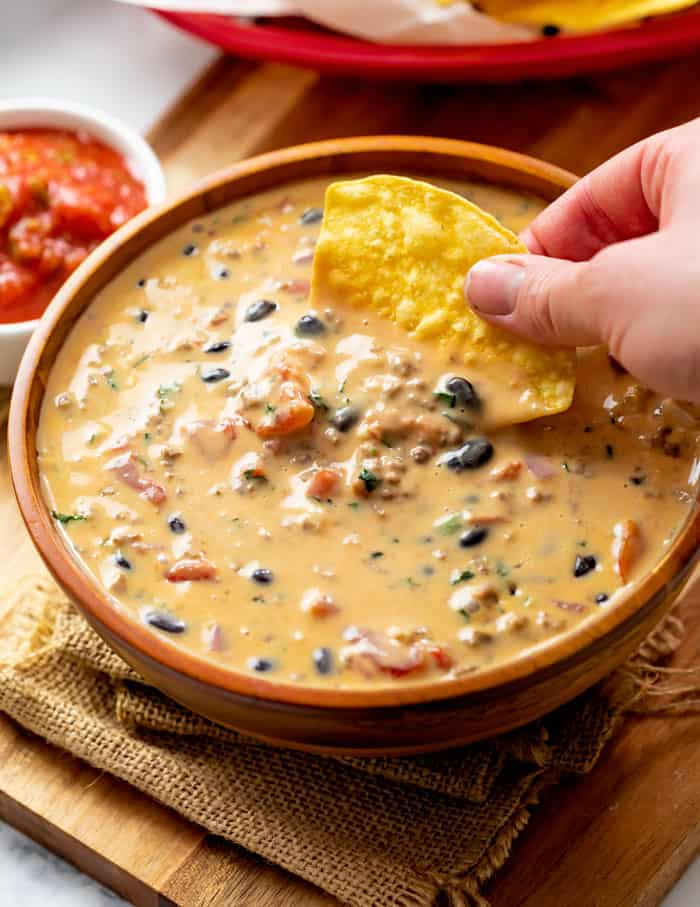 Get ready to tip your hat to this fully loaded cowboy queso. A generous mix of creamy cheesy deliciousness and pops of fresh flavor, this queso eats like a meal. It’s so much more than melted cheese. But the melty cheese part is pretty great too. Make some, you deserve it! Even if you haven’t been in the saddle all day.