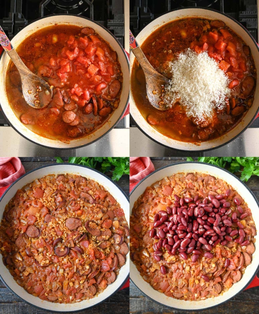 Heat oil over medium heat in dutch oven or heavy stock pot. Add onion, peppers, and sausage. Cook for 5 minutes or until the onion softens, and sausage lightly browns. Reduce heat to medium low. Add garlic, and Cajun seasoning; cook for 1 minute. Add red beans, black beans, chicken broth, tomatoes, and rice, along with the rest of the seasonings. Make sure that the rice is down in the broth. Stir to combine, and bring to low boil. Reduce heat, cover and cook for 15-20 minutes or until rice is tender. Serve warm and enjoy!