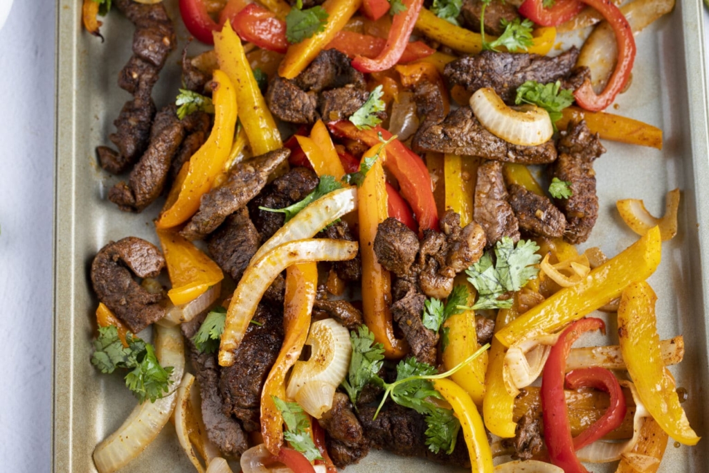 These Easy Sheet Pan Steak Fajitas make the perfect simple and healthy weeknight meal for busy families, on the table in 25 minutes or less!