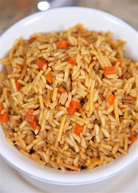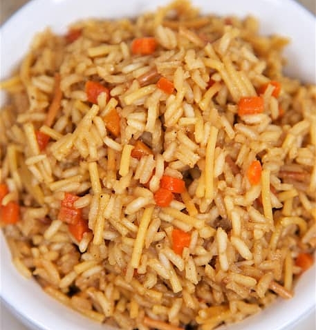 Homemade Beef Rice-A-Roni – never use the boxed stuff again! This looked and tasted just like the real thing! I had to tell my husband that I made the rice from scratch – not a box. Rice, pasta, beef broth, beef bouillon, onion powder, Worcestershire, soy sauce, garlic powder, pepper and chopped carrots. Seriously delicious – tons of great beefy flavor! We make this all the time – SO much better than the box.