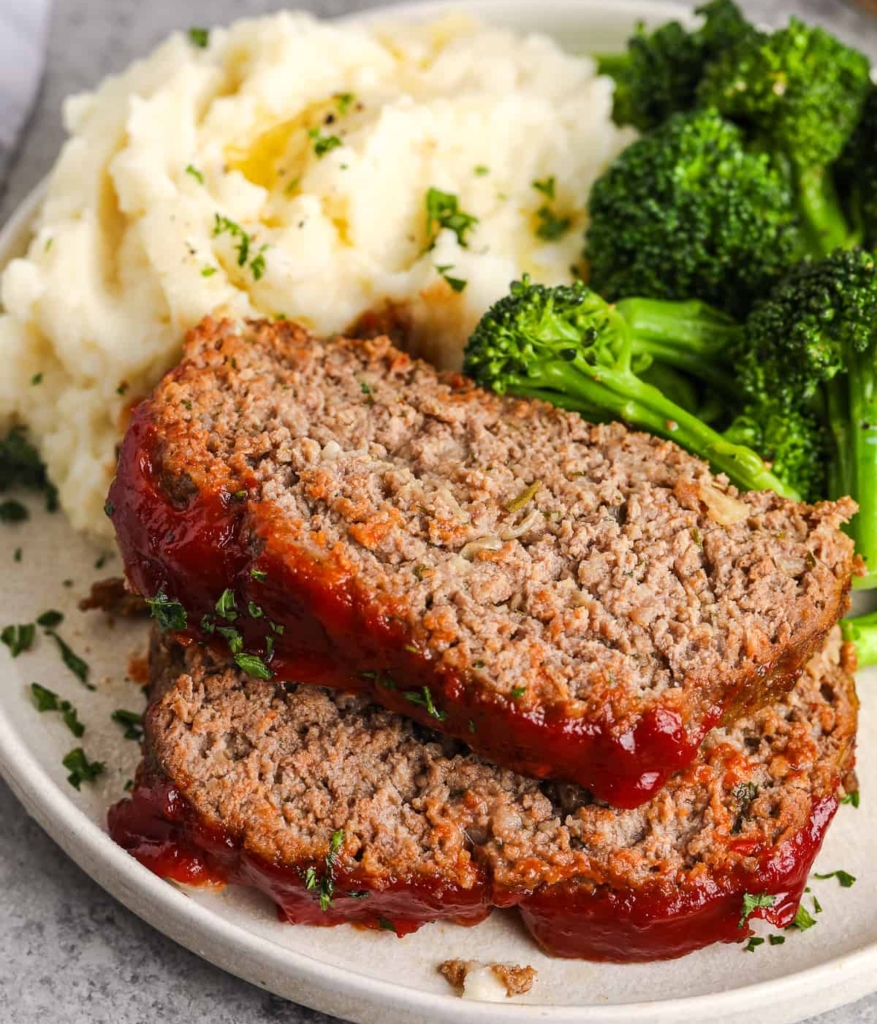 Everyone needs a go-to meatloaf recipe for weeknight dinners. A traditional meatloaf should be moist, easy to make, have simple ingredients, and be covered in that essential sticky ketchup glaze. This falls right in line with my go-to easy dinner ideas, especially when I need something yummy on the table quick.