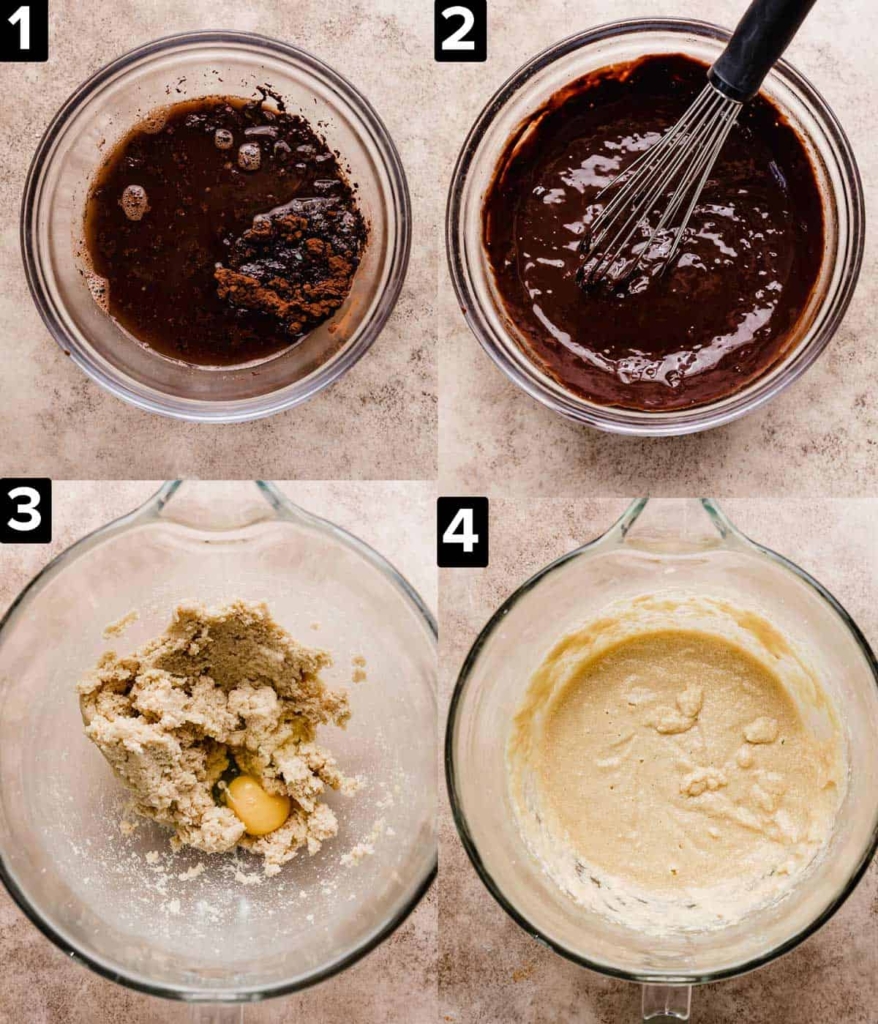 Add the chocolate mixture, and beat again (about 30-45 seconds). Scraping down the sides of the bowl so that everything is evenly combined.