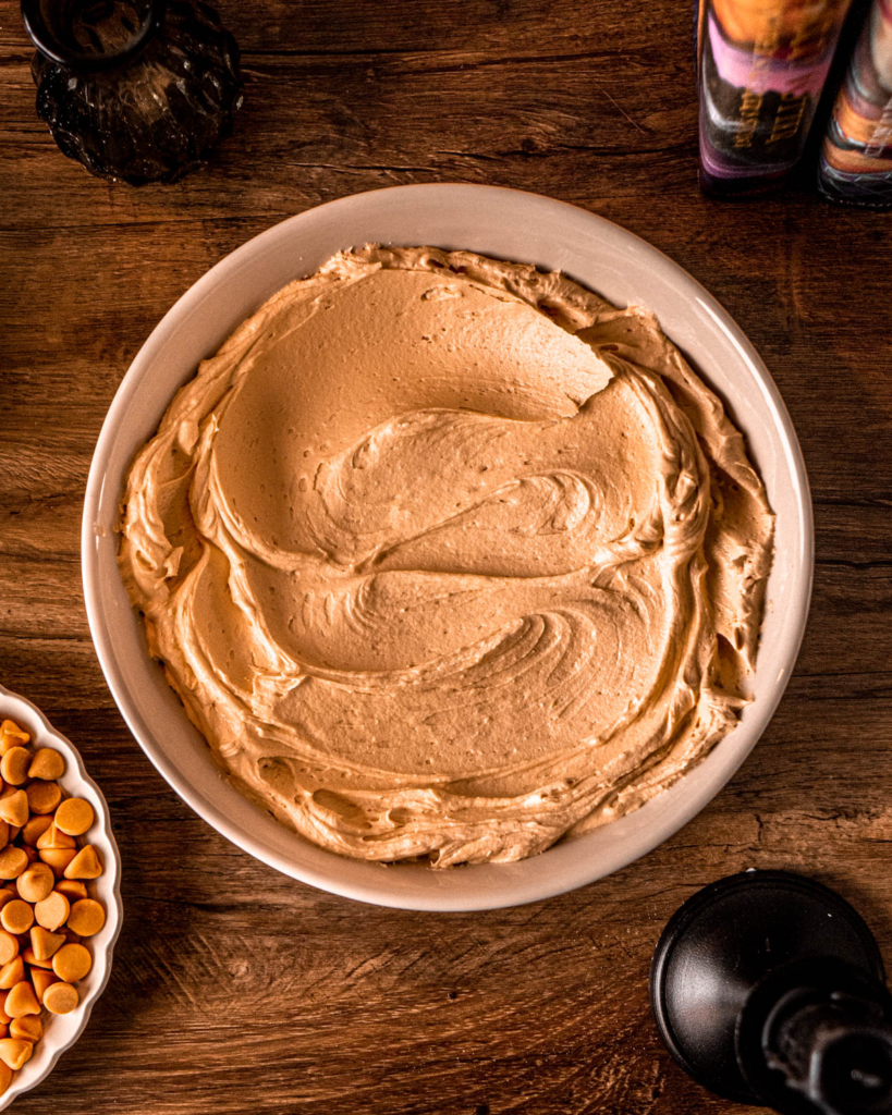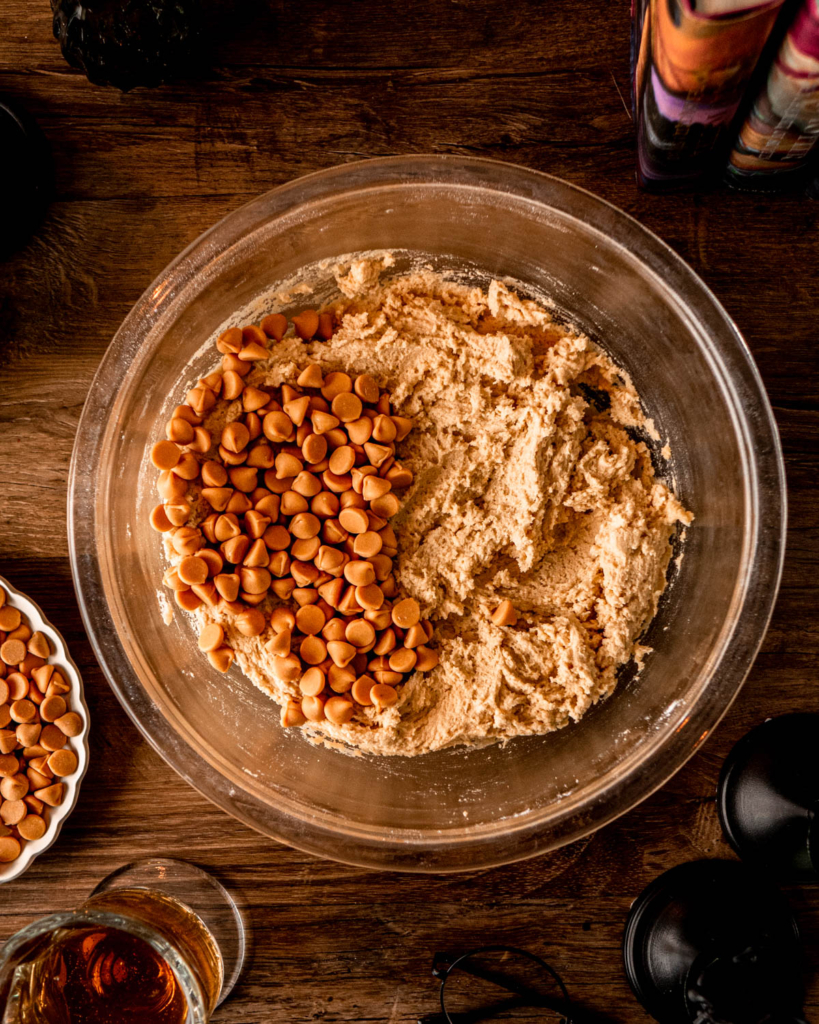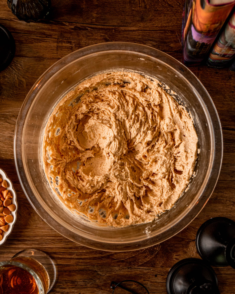 Add the softened unsalted butter and salt to a medium bowl. Whip the butter with an electric mixer on high speed until pale in color and fluffy, around 5-10 minutes. Add in the melted and slightly cooled butterscotch chips and combine. (The chips should be completely melted but just slightly warm to the touch.) Sift in the powdered sugar and mix until combined. Lastly, add in the butter extract and vanilla and mix the frosting until it’s light and fluffy, about one more minute.