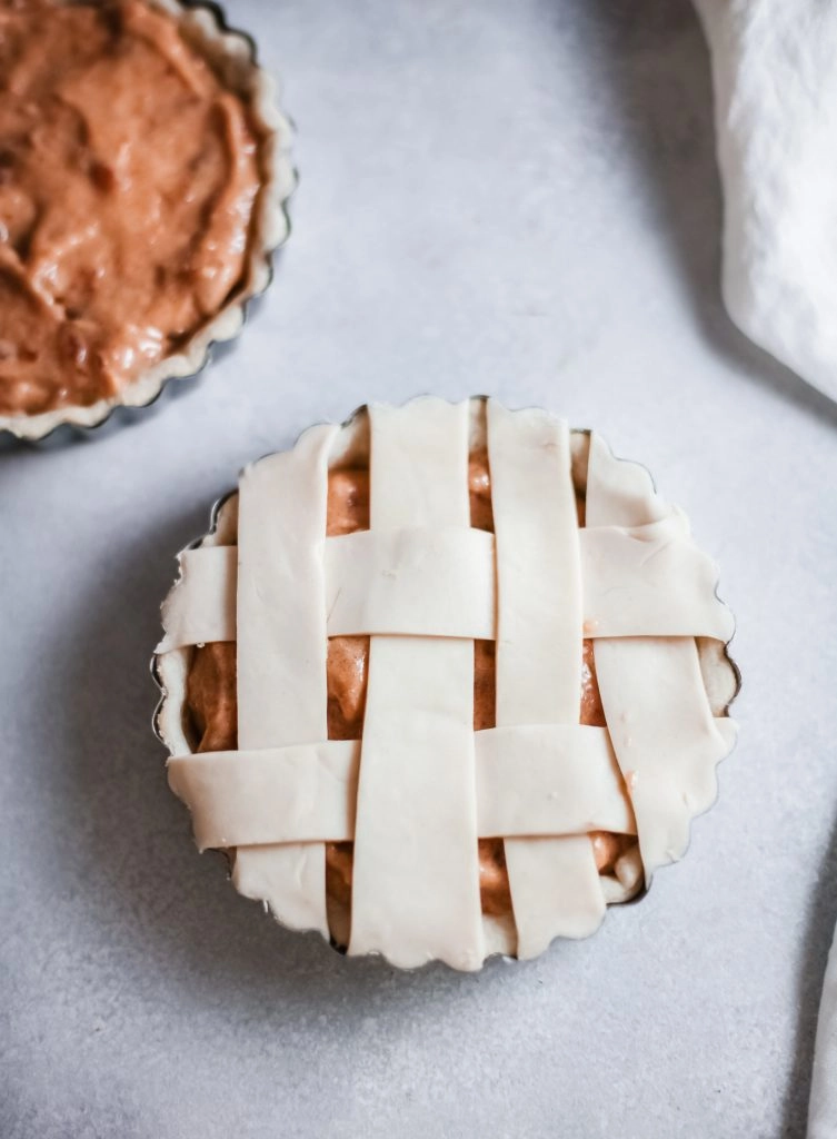 Preheat the oven to 350 degrees. Grease and flour 2 tart pans and set aside. In a bowl combine the flour, sugar, and butter using two forks or a pastry cutter. The mixture should resemble coarse sand. Add the cold water, one tbsp at a time, mixing after each addition. Once the mixture forms big clumps and sticks together when pressed it’s done. Cover with plastic wrap and refrigerate for 30 minutes. Flour a surface and with the help of a rolling pin, roll out the pie crust dough. Cut into 2 pieces and transfer one to the prepared tart pan. Prepare the filling: In a small saucepan over medium heat cook the golden syrup until it melted and just about to begin simmering. Add the breadcrumbs and the vanilla and stir to combine. Remove from heat and once it cools down, beat in the egg. Pour into the tart tin. Cut the remaining pie dough into strips and weave over the pie. Brush with egg and sprinkle with sugar. Bake for 35 to 40 minutes or until done.