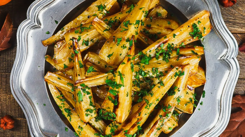 When the parsnips are browned and just cooked through, remove from the oven. Pour the cider reduction evenly over the parsnips. Return to the oven for another 10 – 12 minutes until the glaze is bubbling and sticky. Transfer the parsnips to a serving platter along with any extra glaze on the baking sheet. Garnish with chopped parsley if desired. Enjoy!