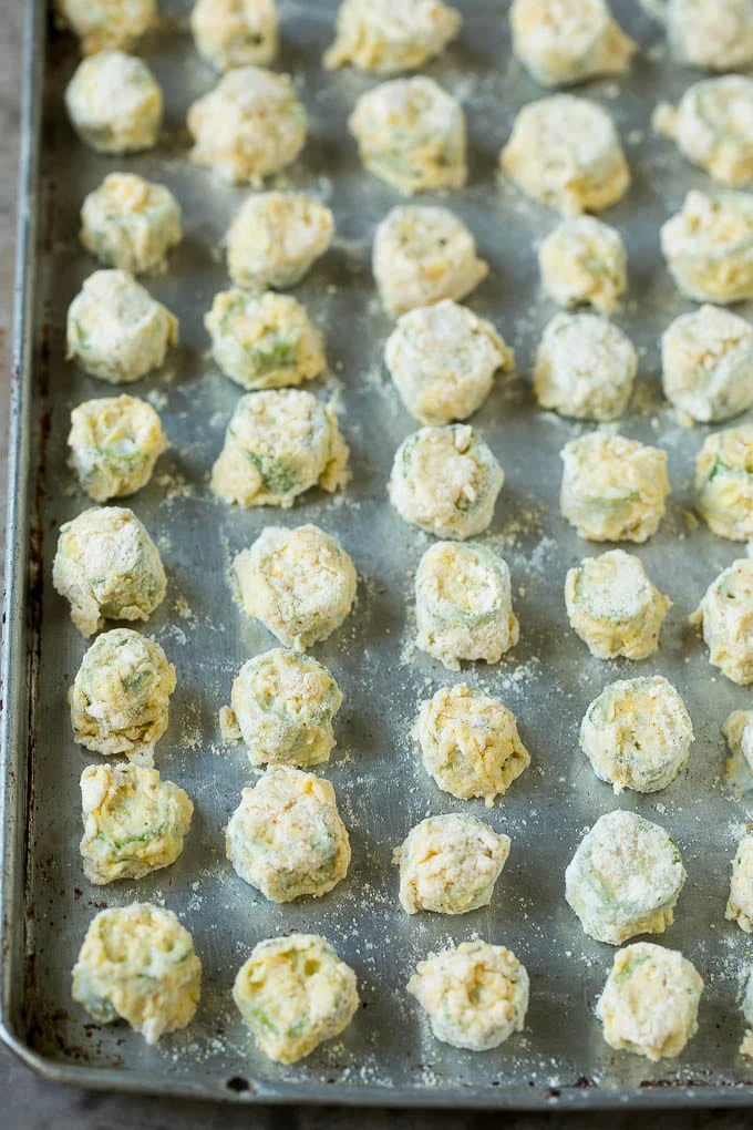 Dredge each piece of okra in the flour mixture, making sure it’s coated evenly. Repeat the process with the remaining okra pieces.