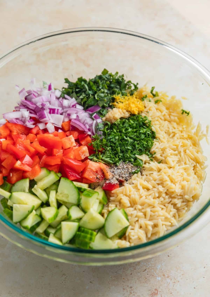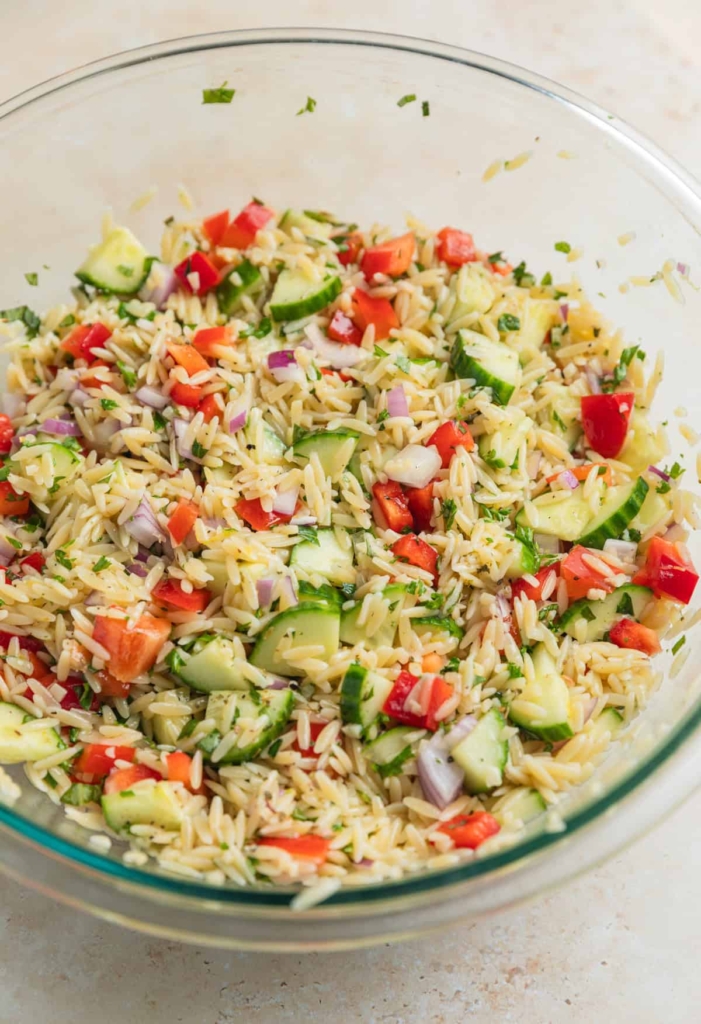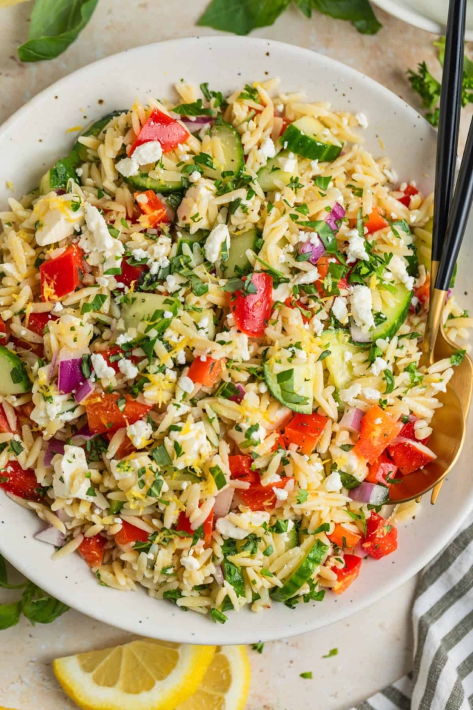 – For best results, chill before serving. While this easy Lemon Orzo Salad can be eaten freshly tossed, chilling for about 30 minutes will allow the flavors to meld and really soak in. If time allows, try to chill longer.