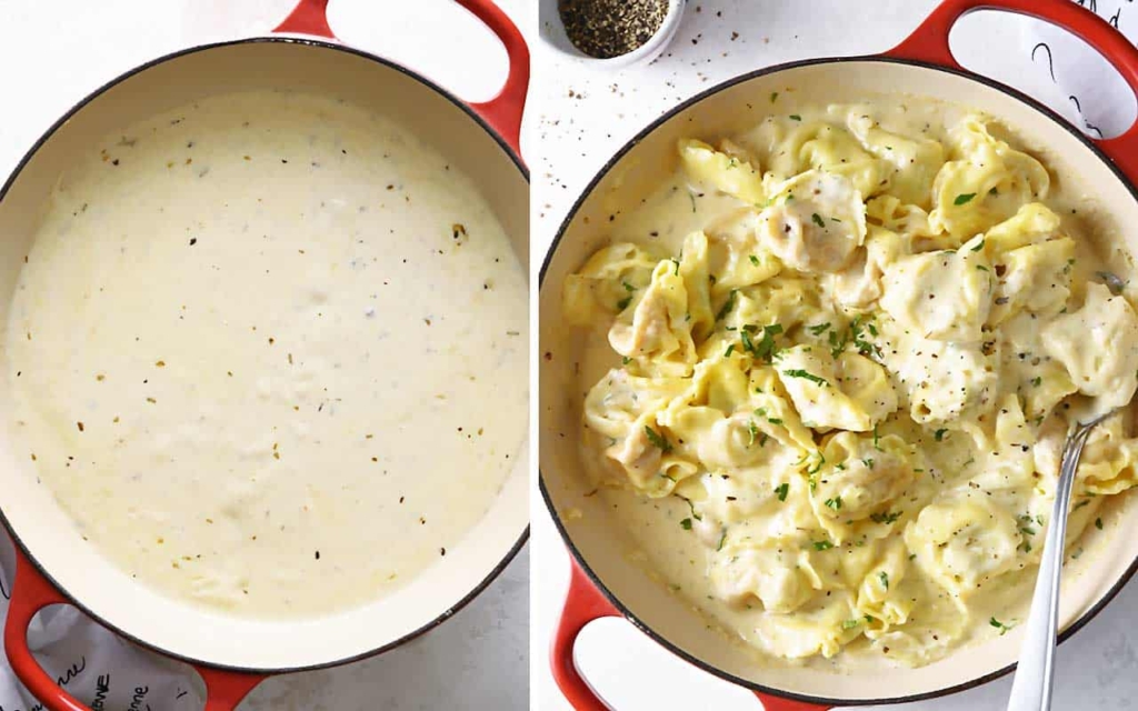 This creamy garlic butter sauce and tortellini is easy, quick and amazingly creamy. Make it with fresh or frozen tortellini for a quick restaurant-style meal. No flour required!