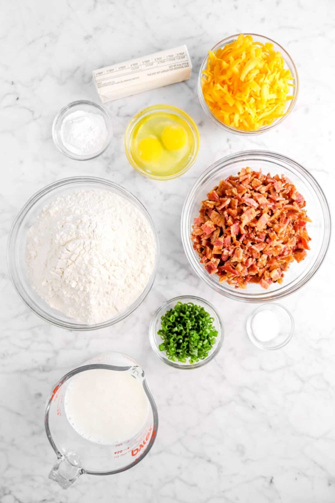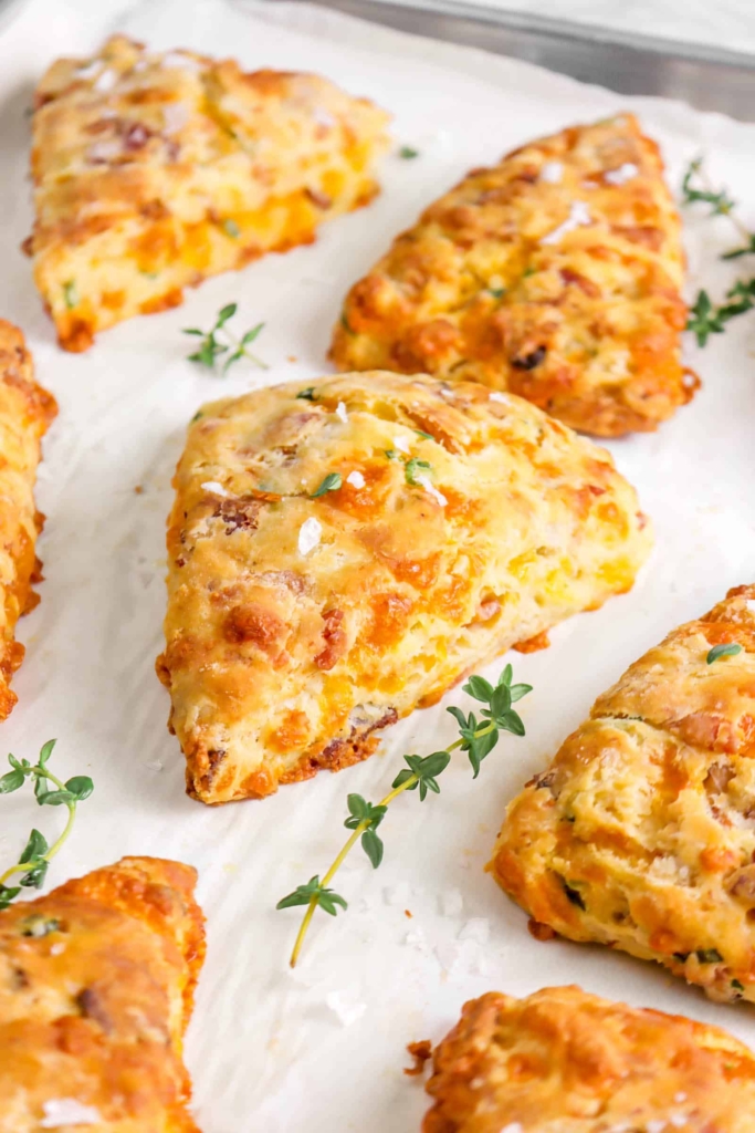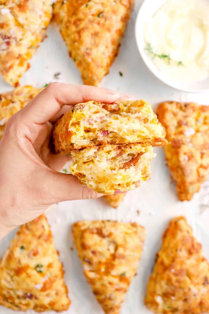 We’re changing it up from the usual sugary breakfast treats with these savory Bacon Cheddar and Chive Scones. Made with buttery biscuit dough, applewood-smoked bacon, fresh chives, and extra cheddar cheese, they have a crispy exterior and a soft, flaky, and cheesy interior. Perfect for breakfast, brunch, or as a snack!