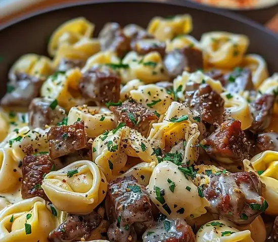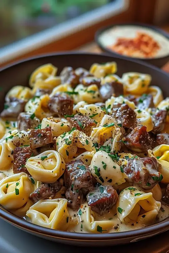 Cheesesteak Tortellini in Rich Provolone Sauce