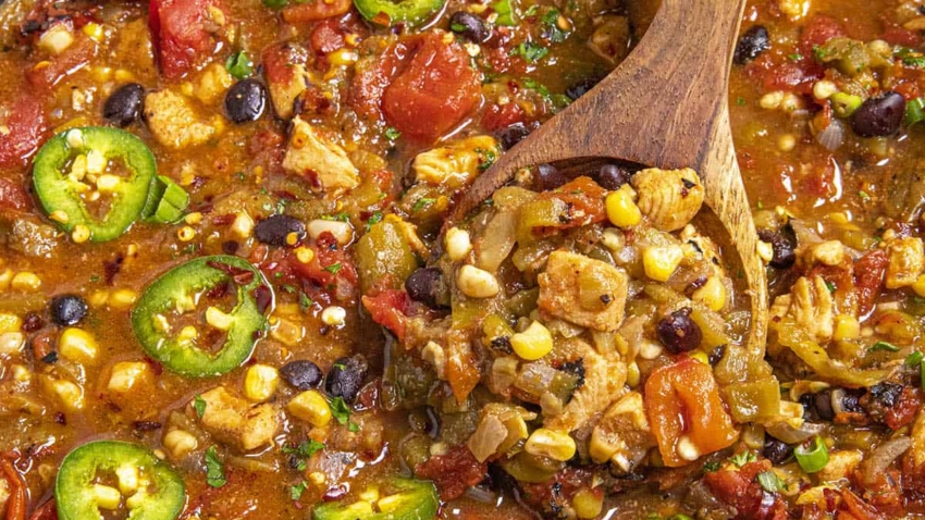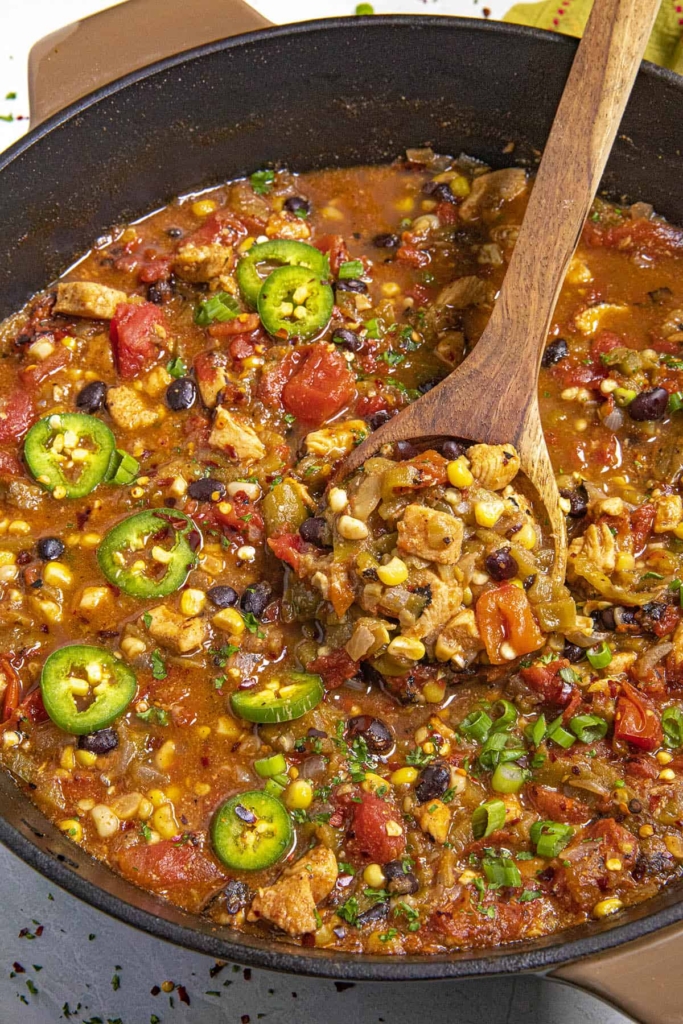 This chicken soup recipe is loaded with flavors of the Southwest with chunky chicken, fire roasted tomatoes, roasted poblanos, corn, black beans and warming spices. One of my favorites.