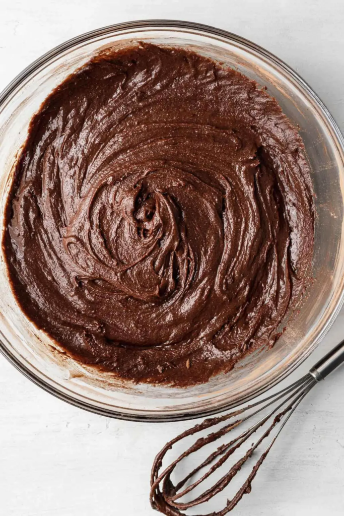 To make the brownies: Preheat the oven to 350°F (180°C). Line a 9×13-inch baking pan with foil or parchment paper, making sure to leave some overhang for easy removal. If using foil, spray it well with nonstick cooking spray, and set aside. In a large mixing bowl, whisk together the melted butter, granulated sugar, and brown sugar until well combined. Then whisk in the eggs, egg yolk, and vanilla extract until fully combined. Sift in the cocoa powder, flour, and salt and continue whisking until just combined, stopping to scrape down the sides of the bowl as needed. Scoop the batter into the prepared baking pan and spread it around into one even layer. Bake for 27 to 33 minutes or until a toothpick inserted into the center comes out clean with just a few moist crumbs.