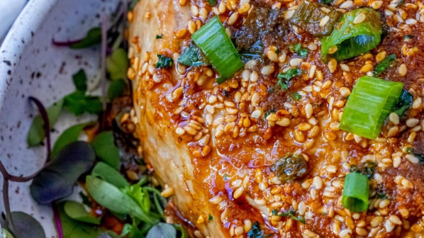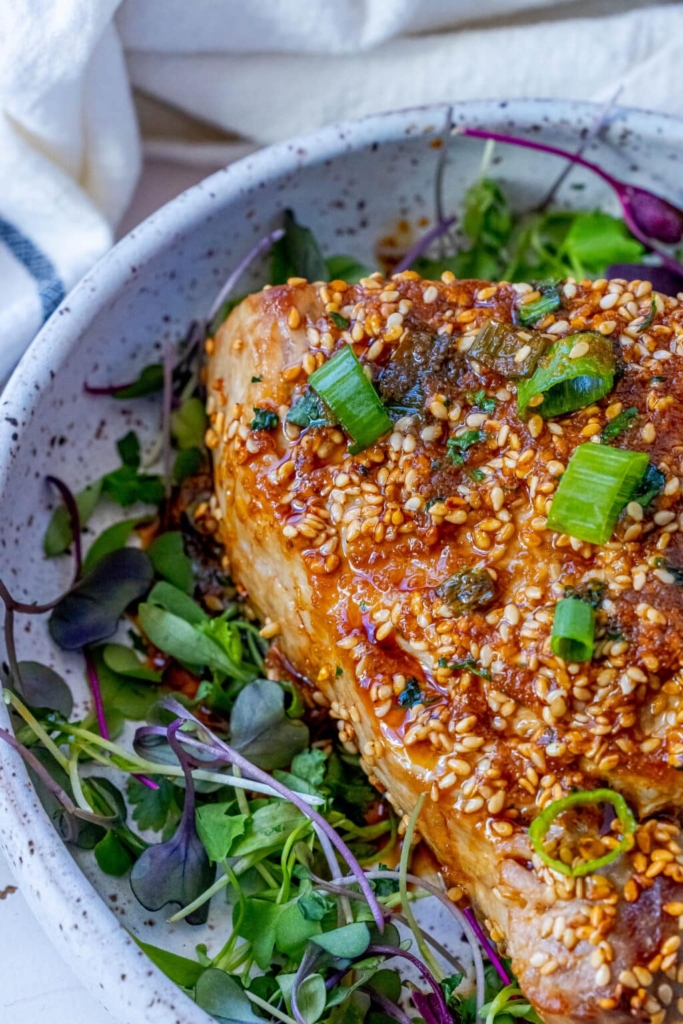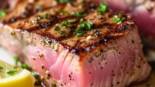 Grilled tuna steaks marinated and topped with a sesame ginger sauce that is easy to make from scratch and loaded with sweet and savory flavor!