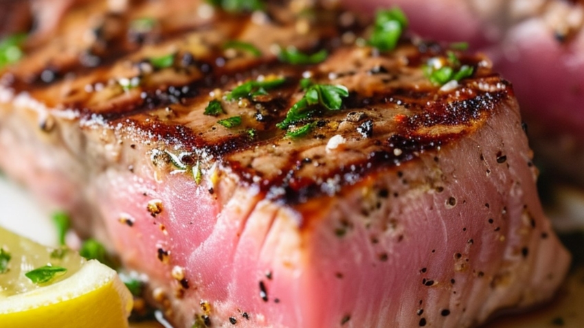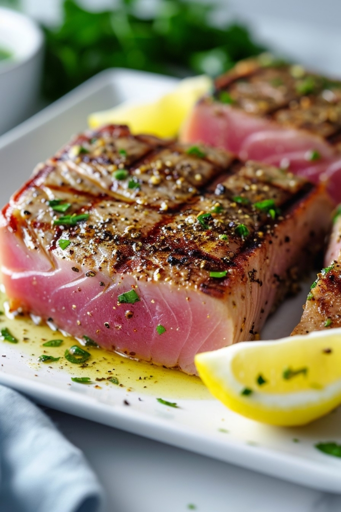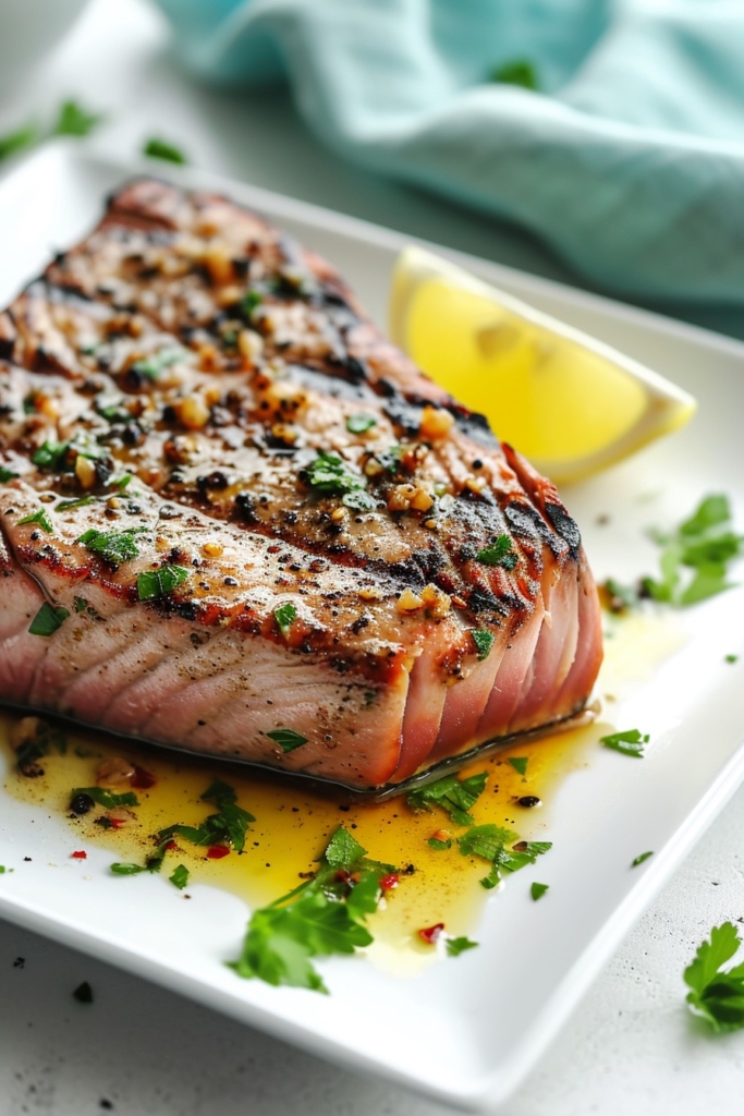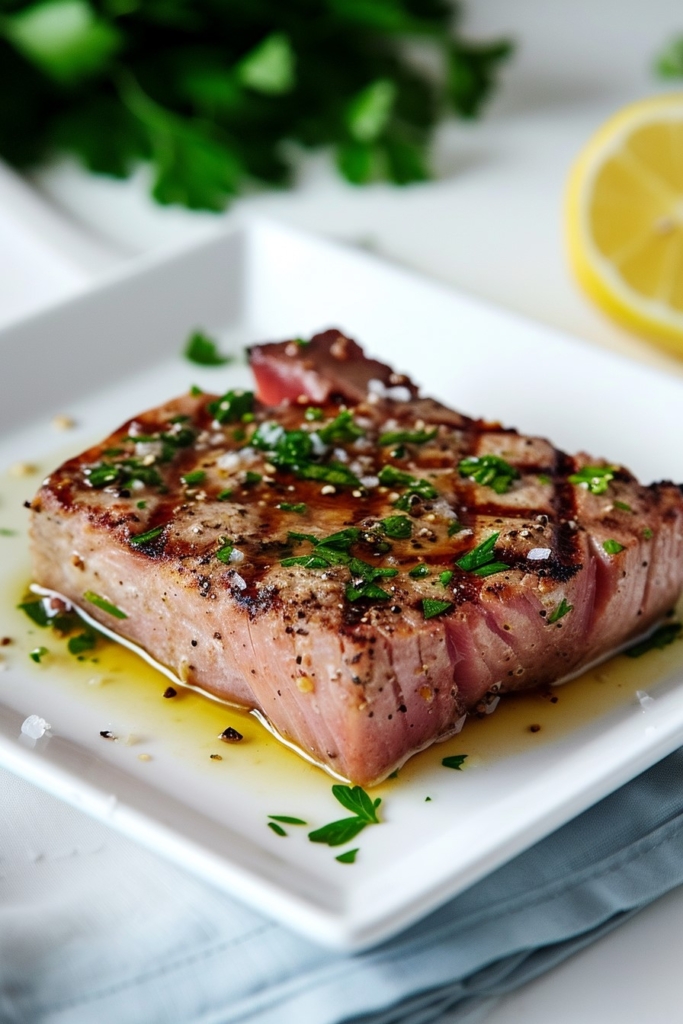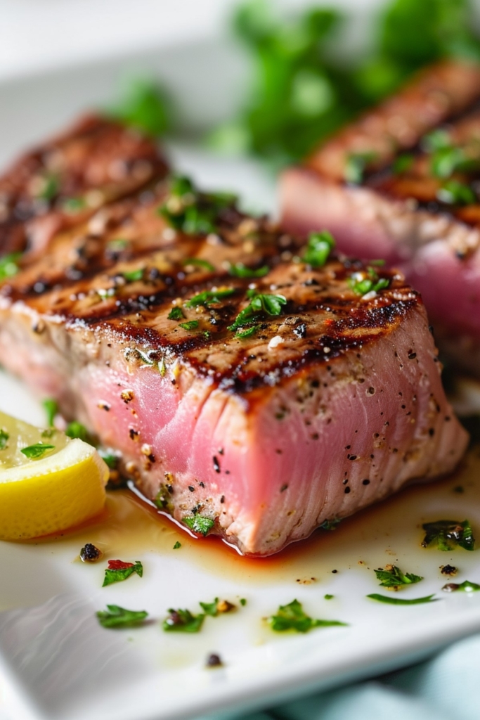 Indulge in a succulent grilled tuna steak, seasoned with a harmonious blend of herbs and spices, seared to perfection. This keto-friendly recipe offers a perfect balance of protein and healthy fats, ideal for a satisfying lunch or dinner.
