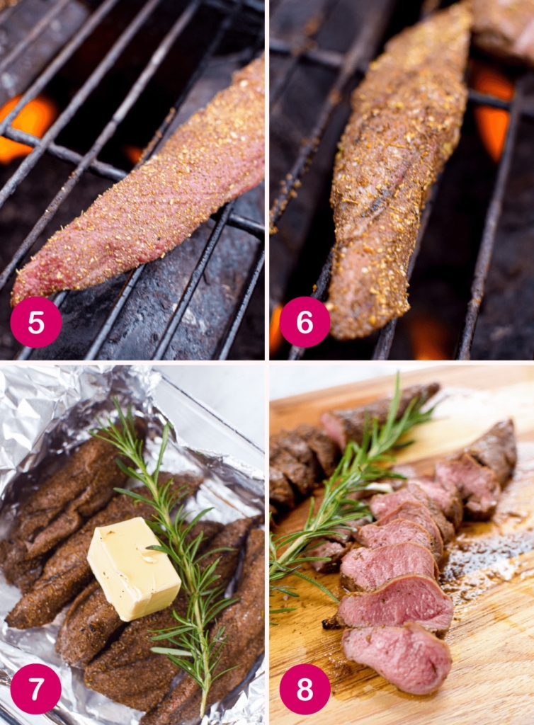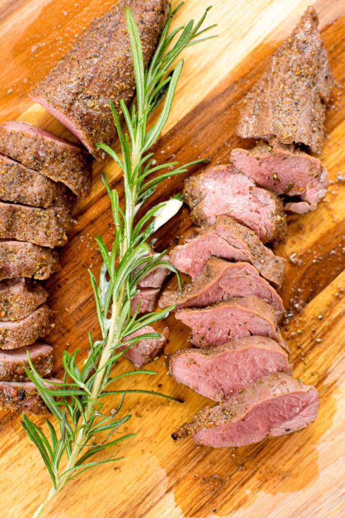 Place the steak on the hot grill. Cook for 2.5 minutes per side, more or less for your desired doneness and thickness of the steak. I recommend pulling the meat off the grill once a temperature of 125°F is reached. If pan searing, place the steak on the hot skillet. For medium rare, a 1-inch thick steak will take approximately 3-4 minutes to cook on each side. Add 1 to 5 minutes per side for your preference of doneness. Use an instant-read thermometer and wait to reach a temperature of 125°F.