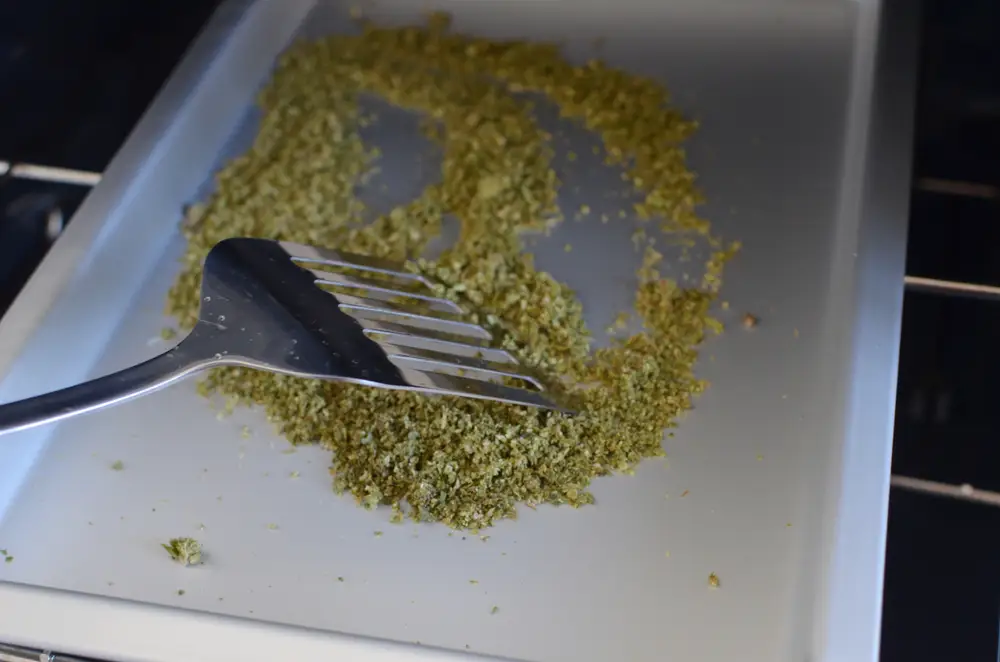 - Bake for 30 minutes. Stir it up every five minutes to make sure it is being evenly decarbed.