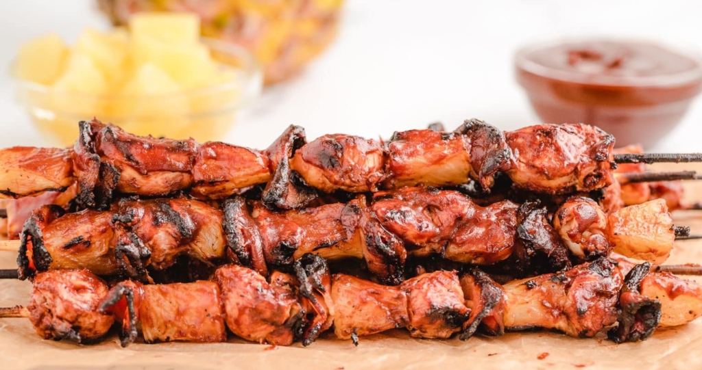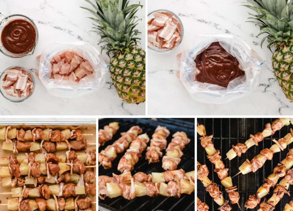 BBQ Chicken Kabobs with Bacon & Pineapple