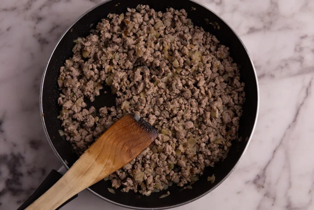 – Limit fat. When cooking the onion and ground meat, limit the amount of oil or butter you use to a minimum. You want the meat mixture to be fairly dry, not greasy. The same applies if you’re cooking onions to top your pierogi.