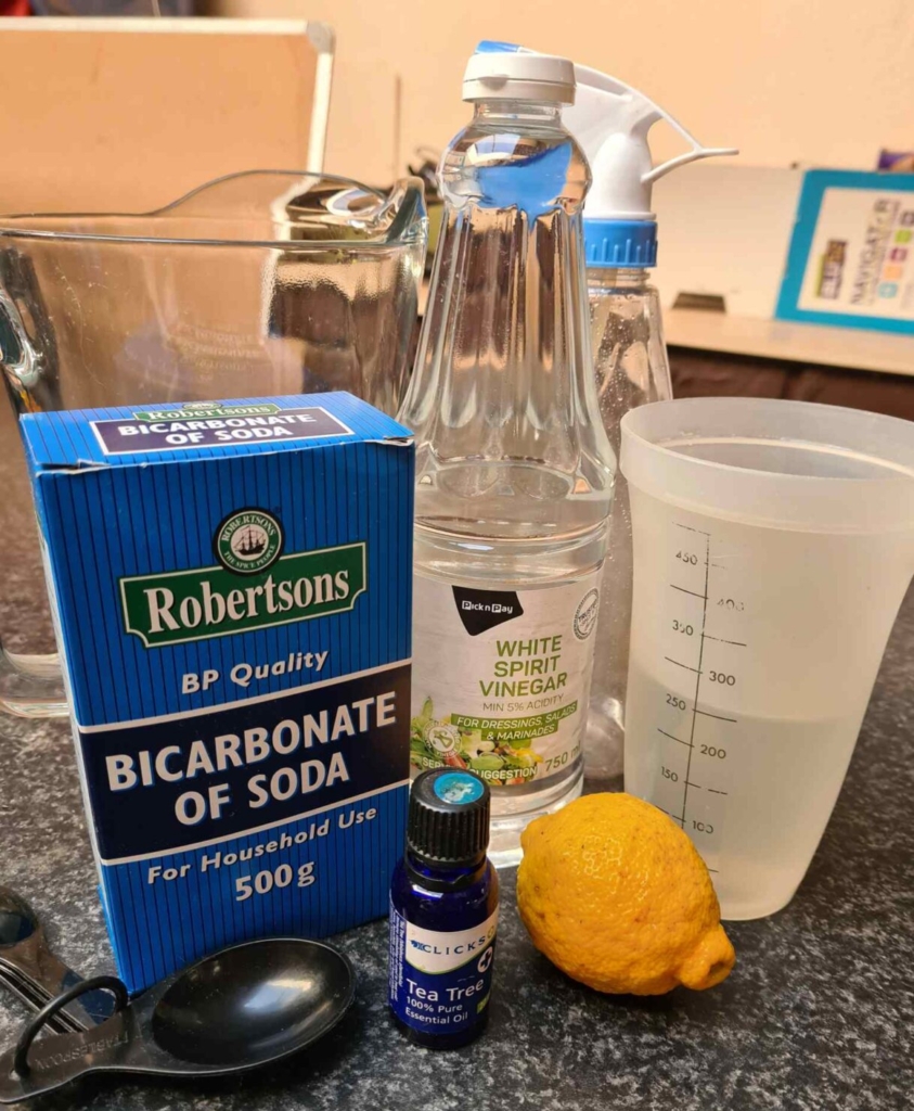 – Essential Oils: The use of essential oils is completely optional. Different essential oils have different properties. They can do just about anything from smell nice to kill bacteria and fungal spores. If you want to add essential oil, you could use citrus oils – these will have the same antibacterial properties as the fruit juice, only more concentrated. If you wish to use a different scent, that is fine. I always add tea tree oil in every conceivable home remedy or ‘brew’, regardless of whether I add citrus or not. Tea tree oil has antibacterial, antiviral, antiseptic, anti-fungal, and anti-inflammatory properties. You do not have to add much, just 10 drops per 250ml of cleaning solution will do. I highly recommend adding tea tree oil because of its super cleaning power.