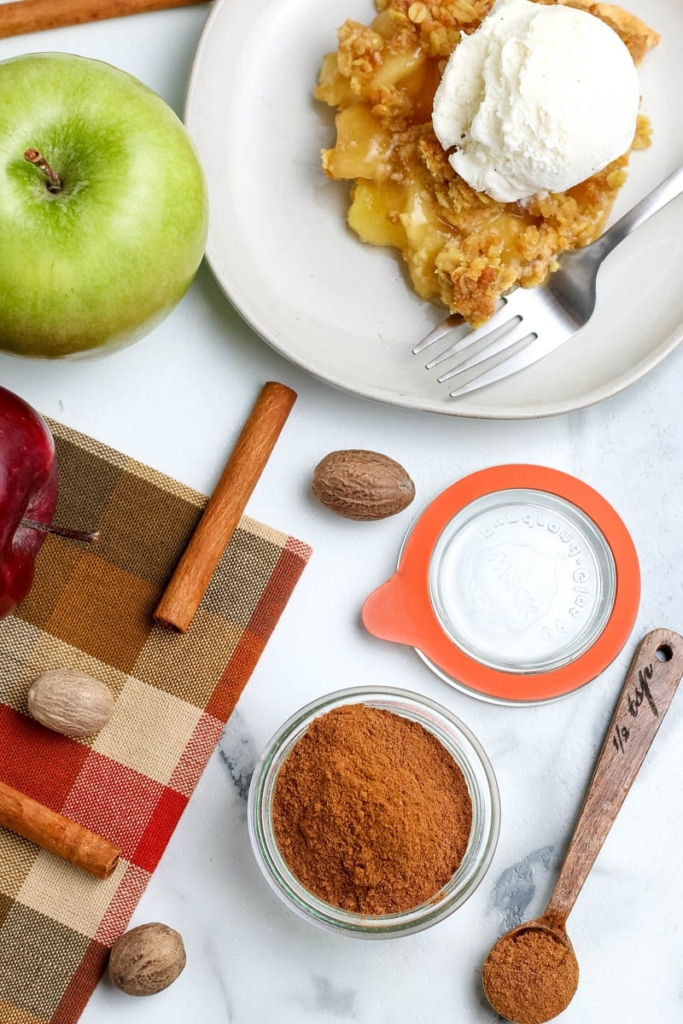 Use this homemade apple pie spice to make your own mix from scratch using spices in your pantry. Use spices from your spice cupboard to create this easy homemade apple pie spice recipe. You just need cinnamon, nutmeg, and allspice. Cardamom is optional. You will often see apple pie spice listed as an ingredient on recipes for apple pies and crisps. I know you have heard of pumpkin pie spice, but you may be asking yourself “What’s apple pie spice?” And you wouldn’t be alone! Apple pie spice is just a mix of several spices that are commonly included in homemade apple pie recipes. In fact, they are included so frequently, that spice manufacturers started bottling them together. Apple pie spice is a combination of cinnamon, nutmeg, allspice and occasionally cardamon.