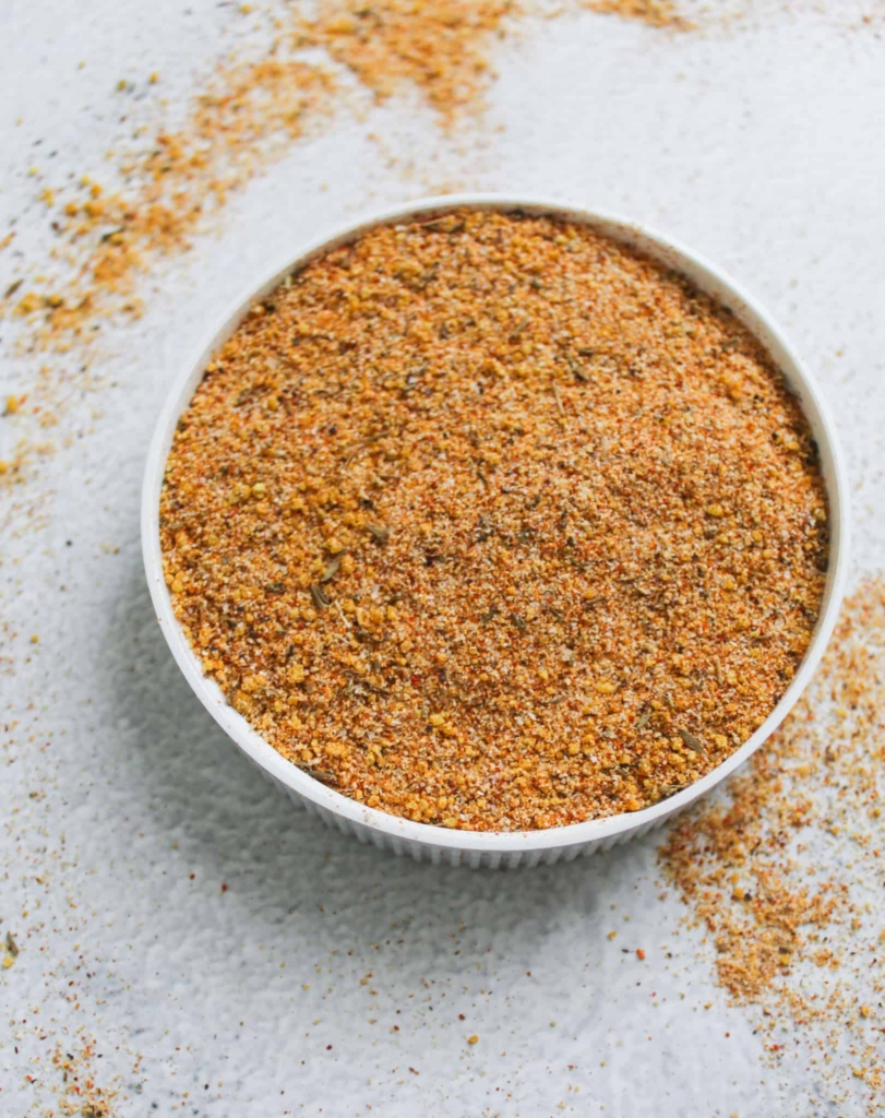Combine the dry ingredients: In a mixing bowl or plate, combine the chicken bullion cubes, paprika, garlic powder, onion powder, ground ginger, black pepper, cayenne pepper (adjust to taste), thyme, and sea salt. Store in an airtight container, such as a small jar with a secure, tight fitting secure lid.