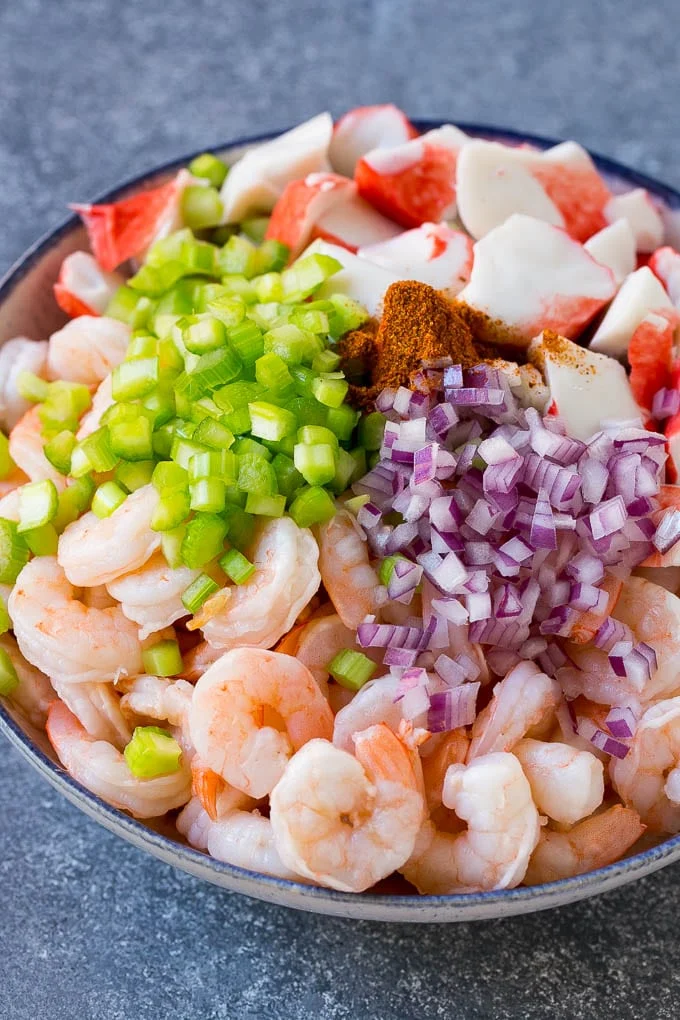 – You can use any combination of seafood that you like in this salad, just be sure that the total weight is one pound of seafood. Other great options include bay scallops, or diced lobster meat.