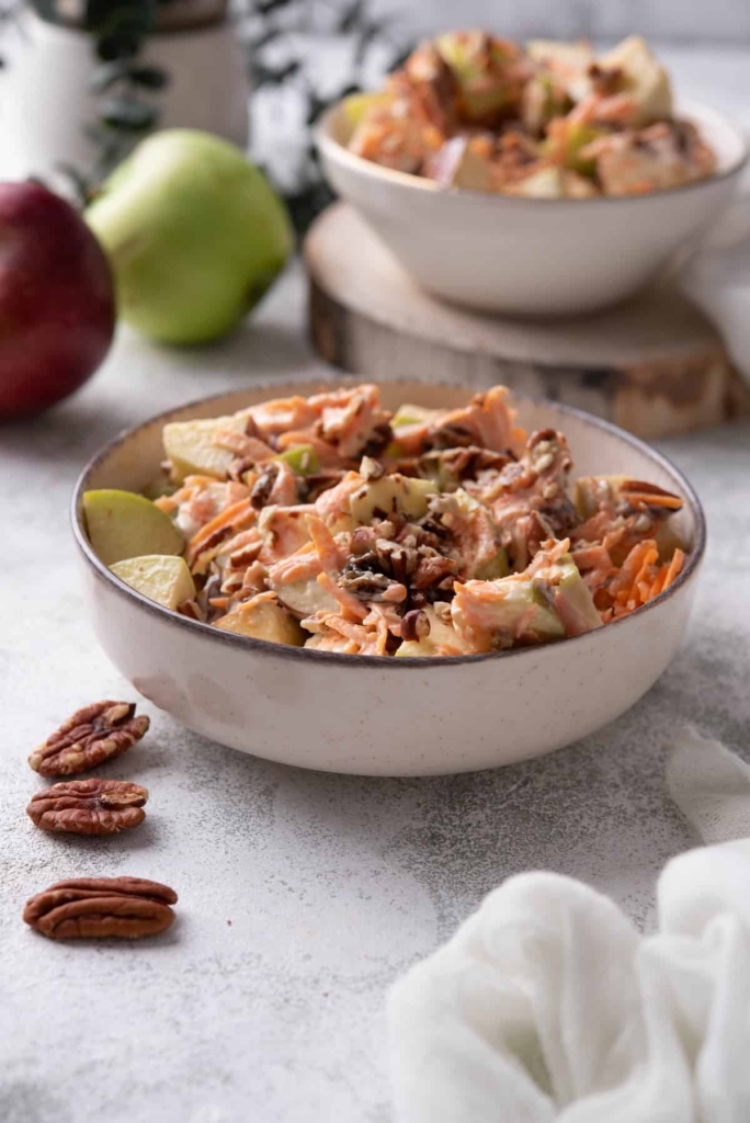 Apple Pecan Salad is ready to eat in less than 60 minutes, including the chilling time.