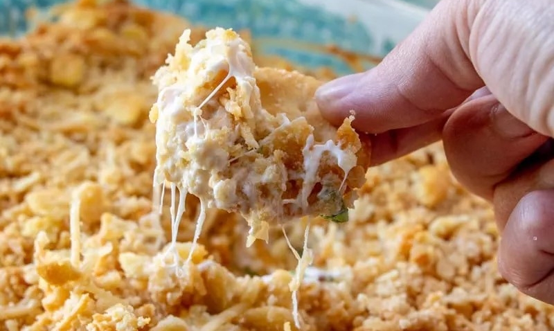 Serve with Party Crackers or Chips as a dip, or spoon some on to each cracker and serve. If making this ahead of time, assemble dish and refrigerate. Cook 30 minutes prior to event and serve hot.