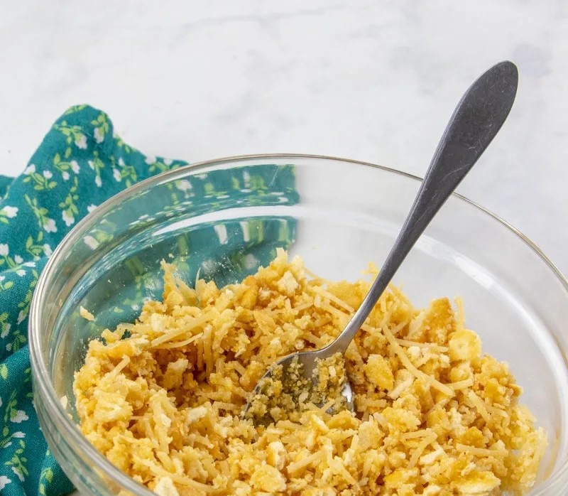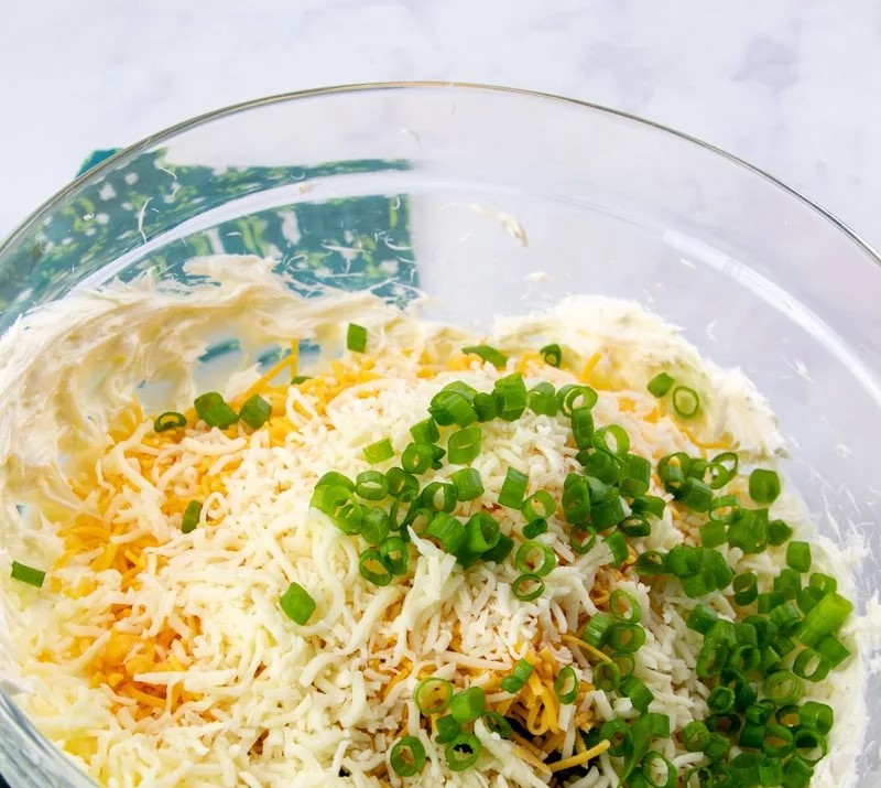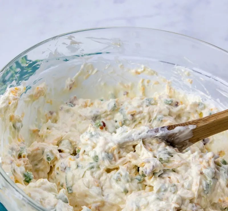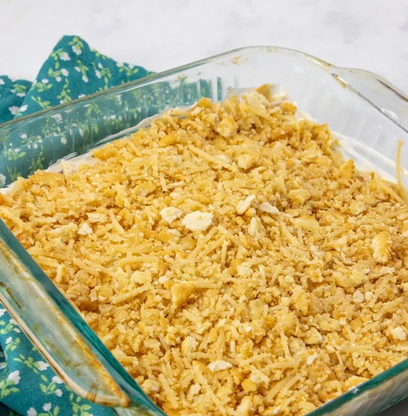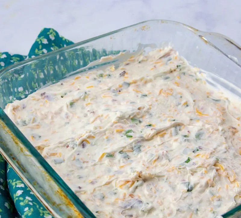 Preheat oven to 350F. Spray 8×8 casserole dish and set aside. Blend cream cheese until smooth and creamy. Add to cream cheese mixture: bacon, mayo (or substitute), jalapeños, cheddar cheese, Mozzarella cheese & diced onion. Mix well. Transfer mixture to casserole dish. Spread evenly in dish. In a small bowl combine Ritz crackers, Parmesan cheese & butter. Sprinkle all over the top of the dip. Bake the dip for 20-30 minutes or until bubbly.
