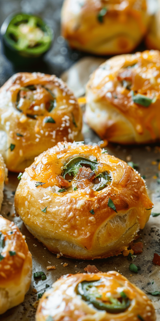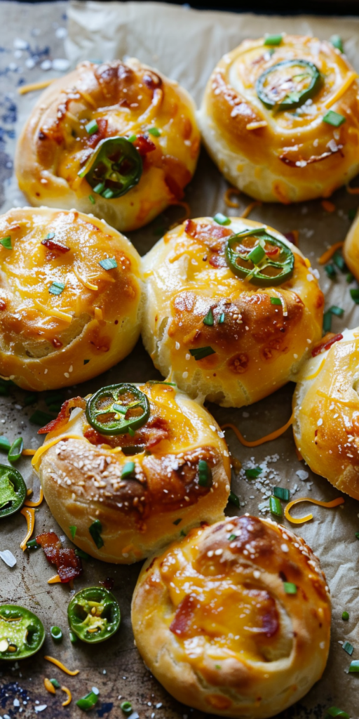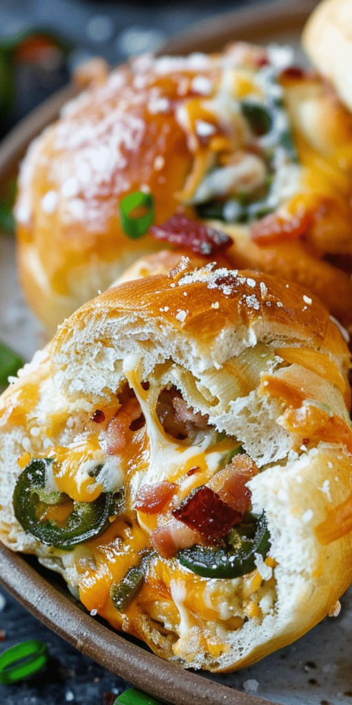 Jalapeño Popper Stuffed Rolls with Bacon are a delightful twist on the classic jalapeño popper, transforming it into a savory, spicy bread roll that’s perfect for any gathering. This innovative recipe encapsulates the creamy, spicy filling of jalapeño poppers—complete with crispy bacon pieces—inside a soft, fluffy bread roll. The combination of spicy jalapeños, rich cream cheese, sharp cheddar, and savory bacon wrapped in a golden-brown crust makes these rolls irresistible.