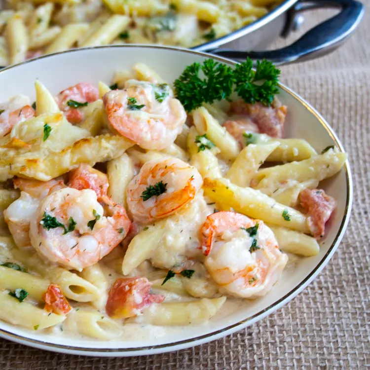 This shrimp casserole with noodles is quick and easy. With shrimp and pasta coated in a creamy herb sauce, this seafood pasta bake is a meal the whole family will love.