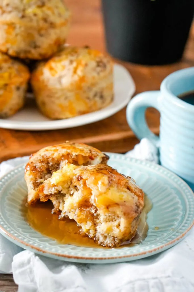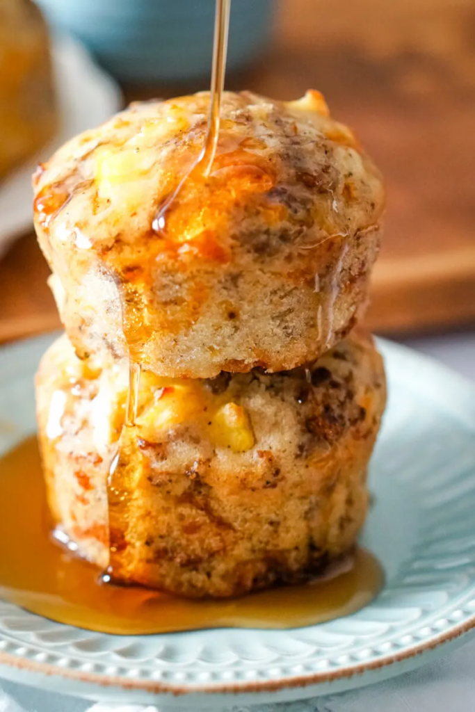 Allow the muffins to cool at least 5-6 minutes before removing from the tin. Serve with extra syrup for dipping.