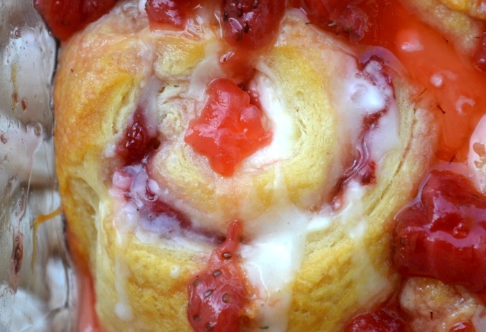 Your friends and family will love this easy semi-homemade strawberry sweet rolls recipe! You only need to whip up a quick strawberry sauce and bake up some store-bought crescent rolls!