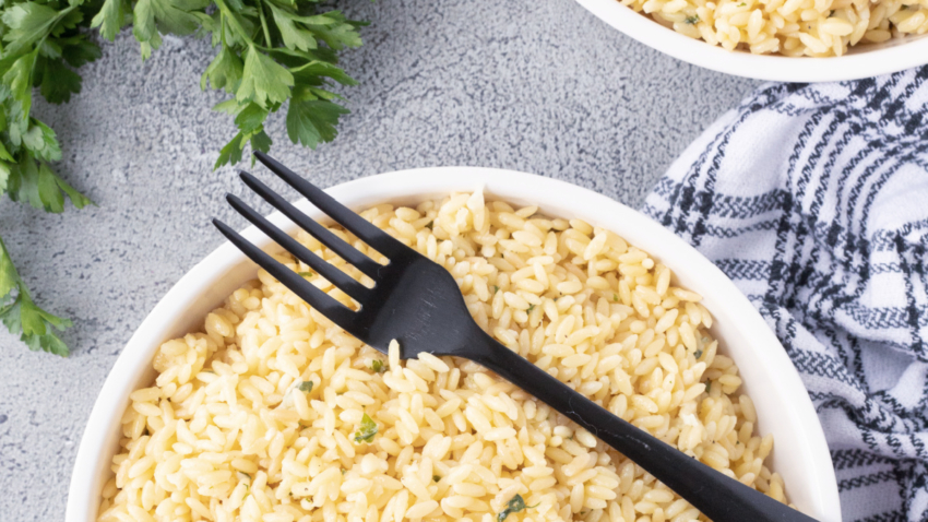 This Creamy Garlic Parmesan Orzo is the perfect side dish. The broth, cheese and cream give it a risotto-like texture, making it a great side dish for chicken, shrimp or beef.