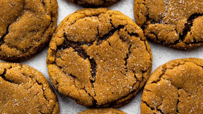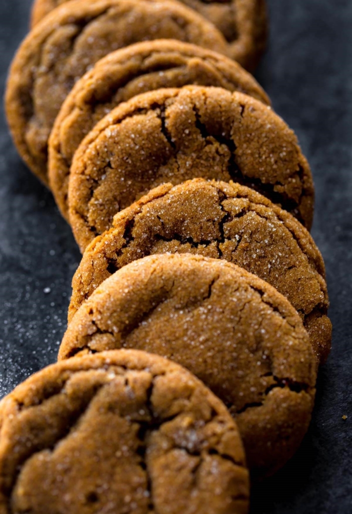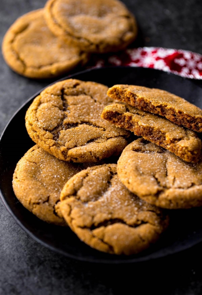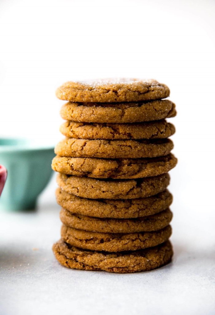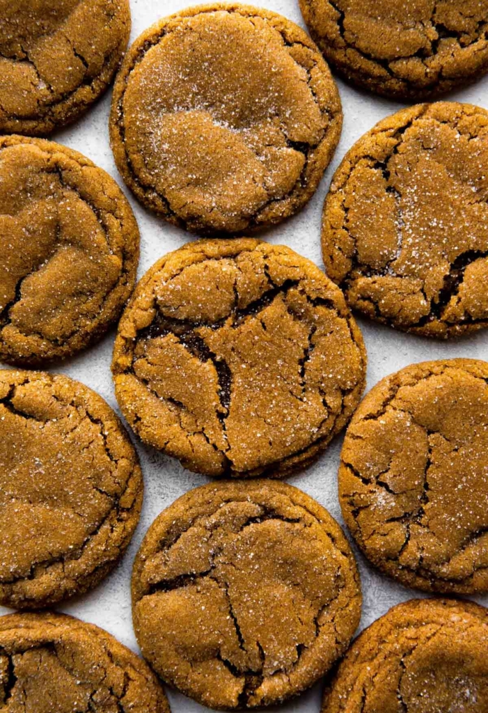Homemade soft molasses cookies with crackly tops are super chewy and perfectly spiced. They stay seriously soft for days—if they last that long—and are always a holiday favorite. Molasses cookies have always been my top choice because they bring me right back to my childhood. I grew up helping my mom bake them. After rolling the dough in the sugar and watching them bake through the little oven window, my sweet reward was biting into a warm cookie fresh from the oven. In addition to the nostalgia, the soft texture paired with cozy molasses puts them above any other cookie.