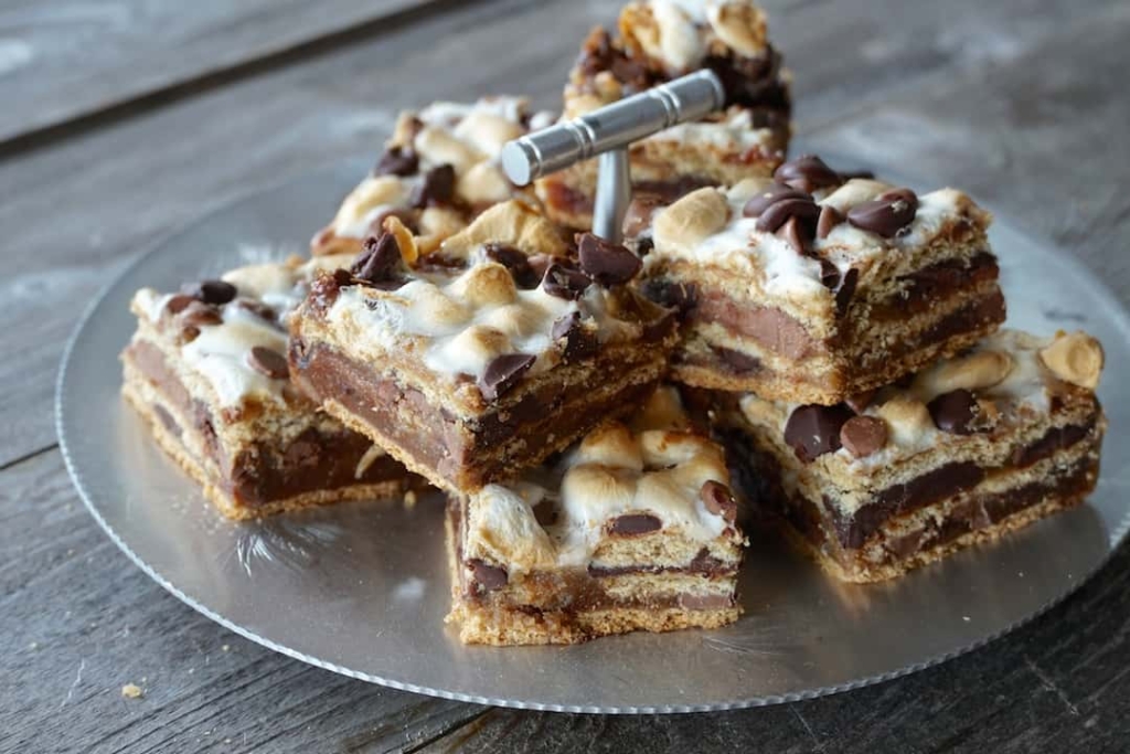 Portion the s’mores into squares, easiest to do when chilled, and serve or store at room temperature for up to 3 days.