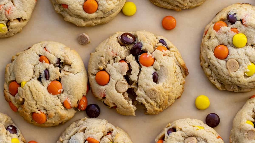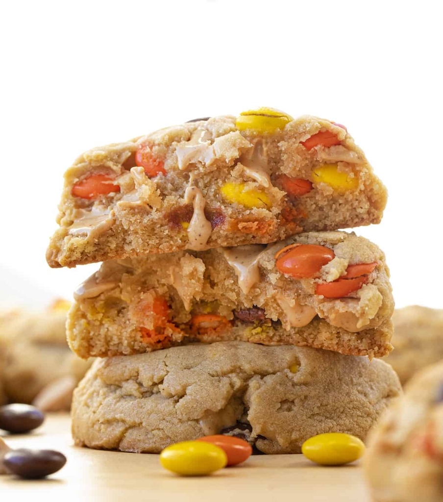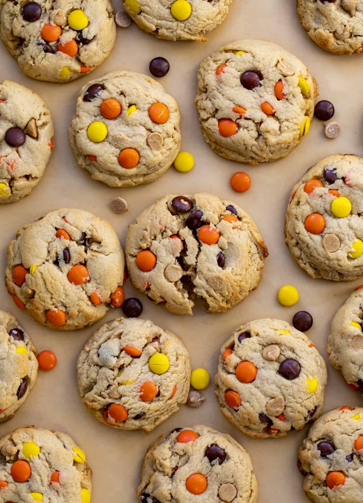 Reese’s Pieces Peanut Butter Cookies are loaded with peanut butter, peanut butter chips, and Reese’s pieces candy…a peanut butter lover’s dream! These cookies have an ooey-gooey center that you are going to love. As you can probably tell, I did not skimp on the peanut butter flavor in these cookies. They are the ultimate peanut butter cookie. There is peanut butter in the dough, as well as peanut butter chips, and two whole cups of Reese’s pieces! These cookies are so gooey in the center and perfectly crisp on the outside. Be sure to make these along with a few of my other cookie recipes and put together an awesome dessert charcuterie board!