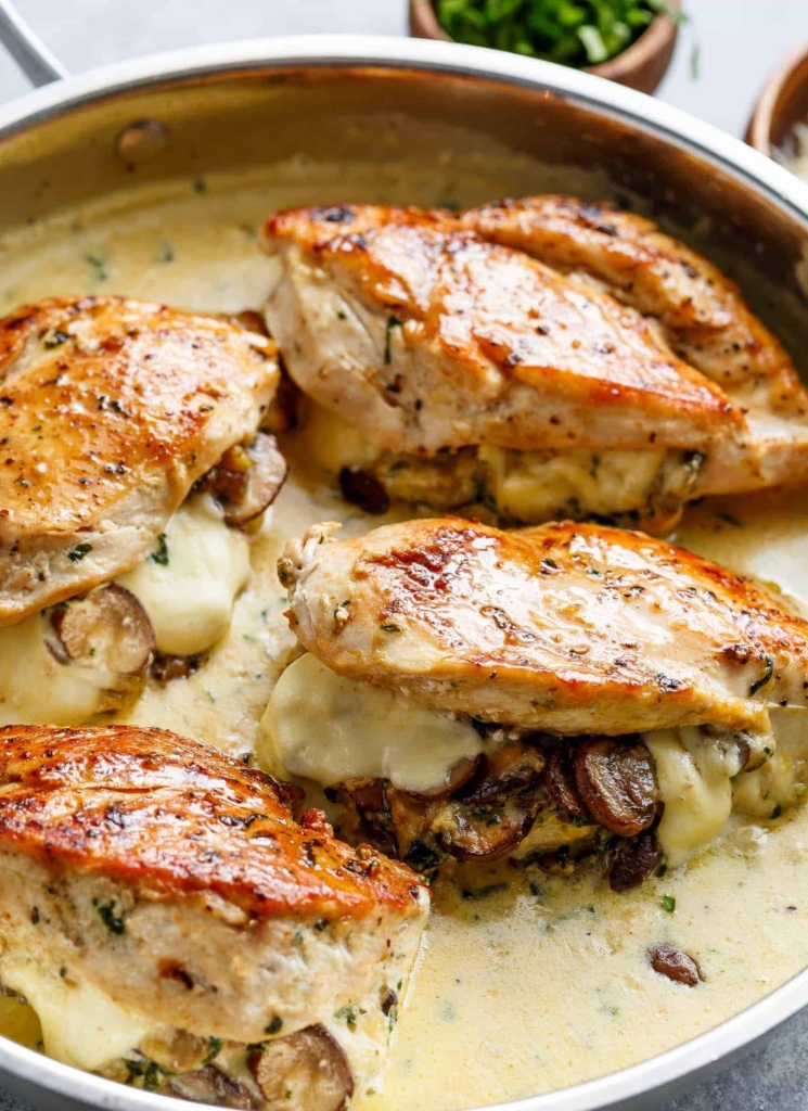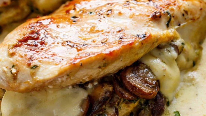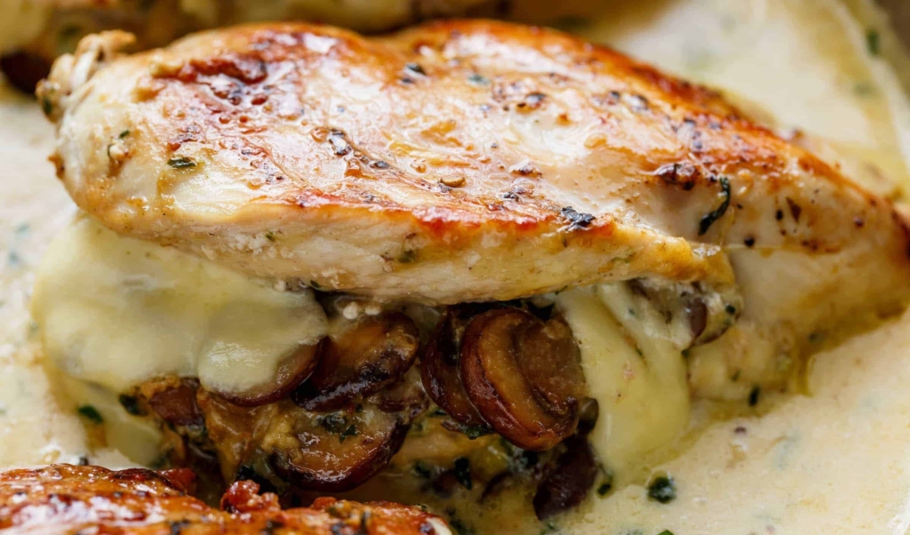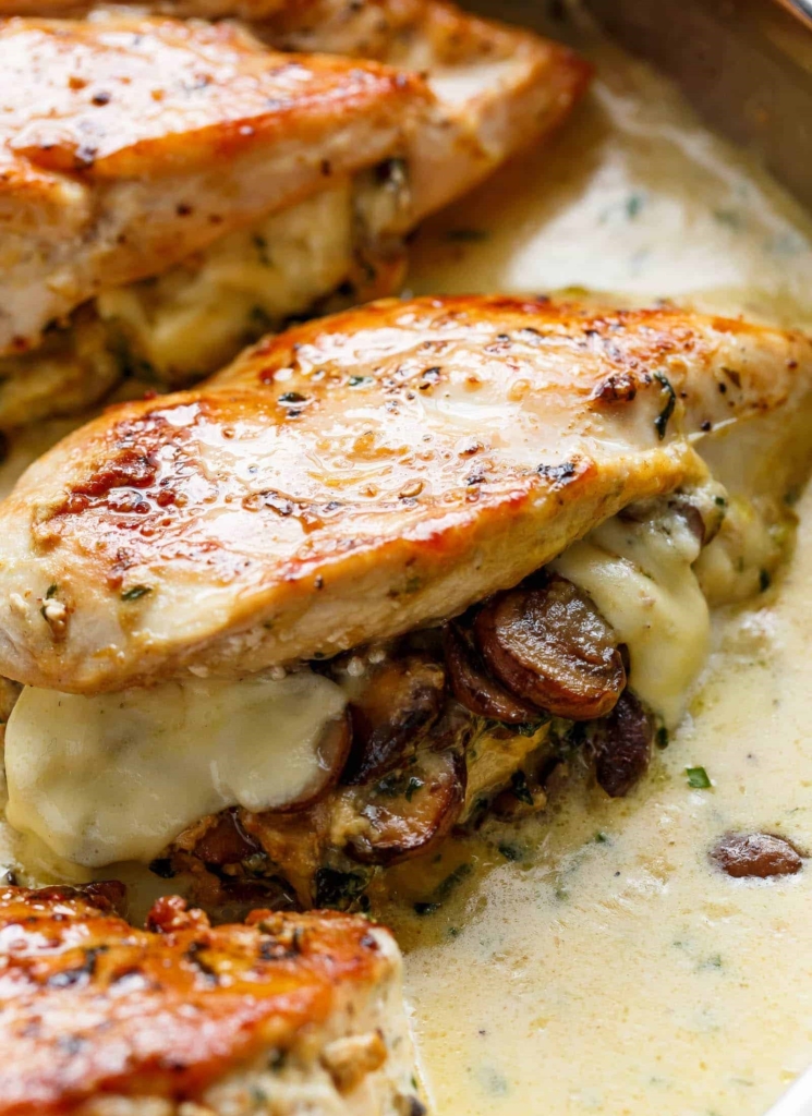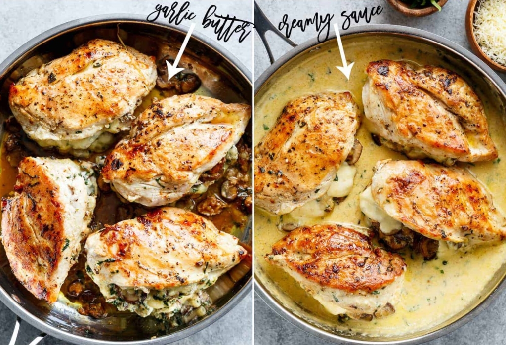 Cheesy Garlic Butter Mushroom Stuffed Chicken