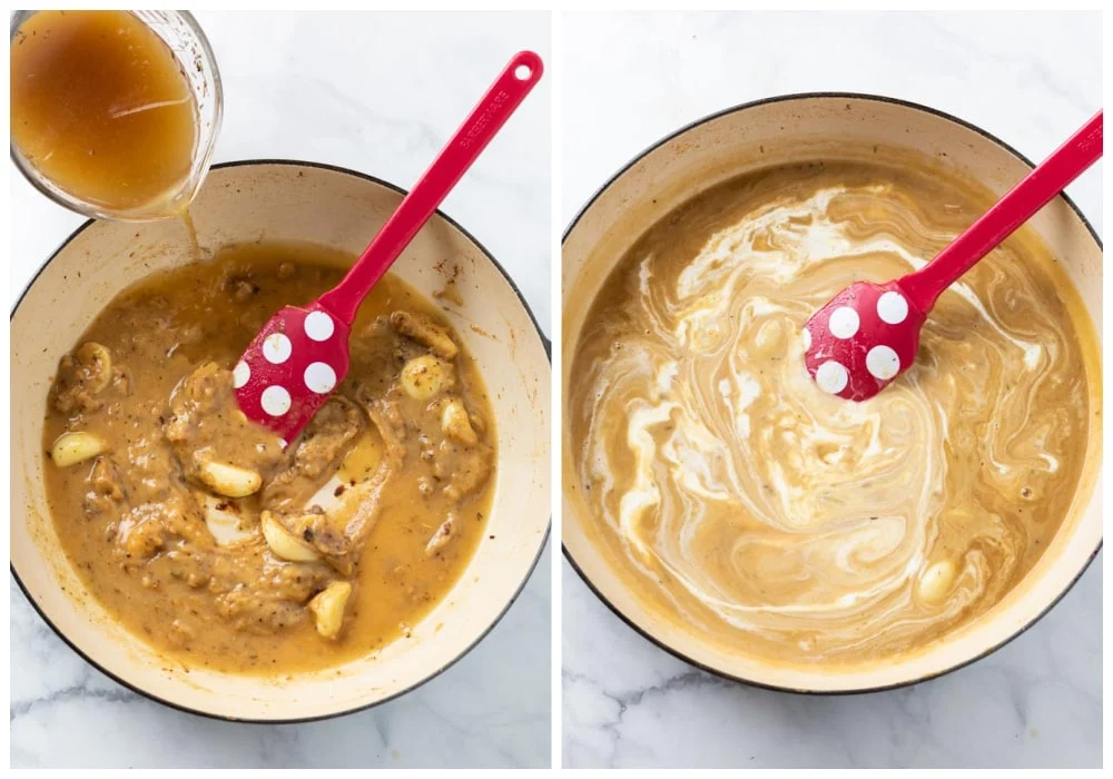 Mushrooms make a great addition to this gravy, I like to sauté them separately and stir them into the sauce at the very end. Cooking them separately lets them retain their color, texture, and flavor.