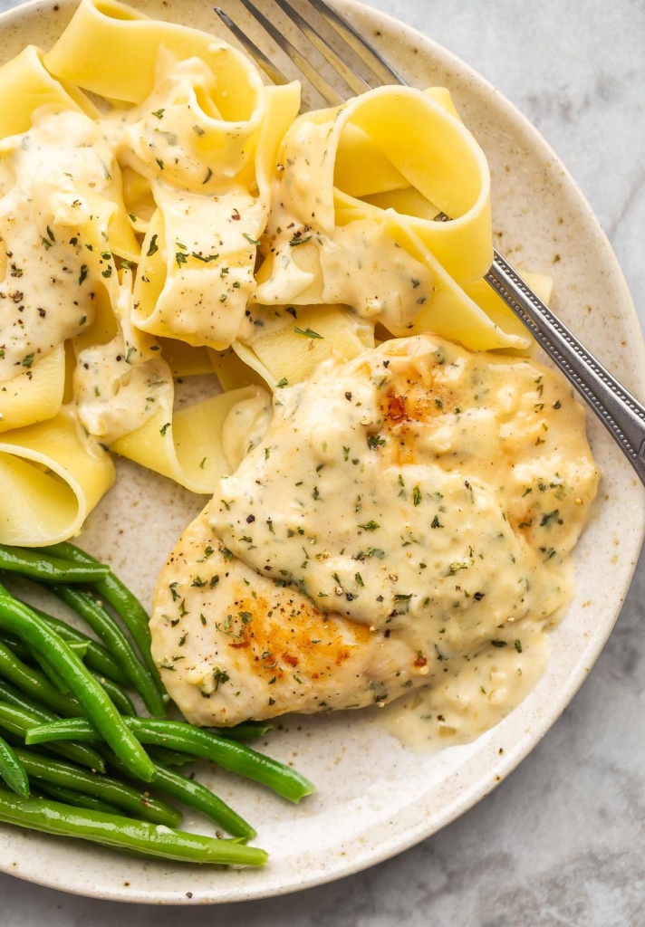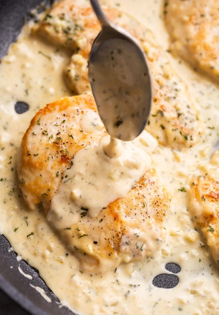 This Creamy Garlic Chicken is an easy one-pan weeknight dinner! It’s made with juicy slices of chicken simmered in a rich, flavorful cream sauce. Another super easy, crowd-pleasing, one-pan dinner coming at you! And this time it’s Creamy Garlic Chicken. This recipe is basically perfect for any occasion. It takes just 20 minutes to whip up and is made with basic ingredients that come together to form an irresistible, decadent meal that everyone will love.