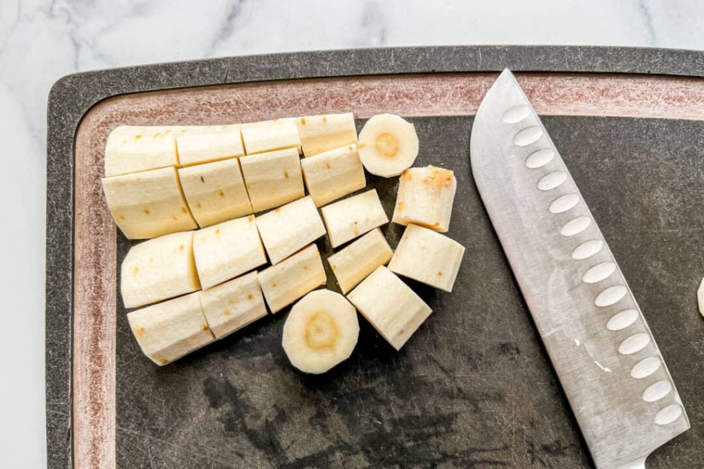 Peel the root vegetables or scrub them thoroughly.