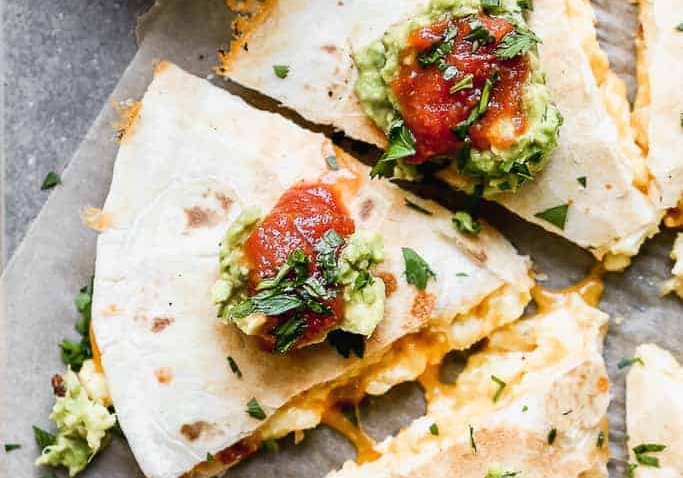 Delicious and easy Breakfast Quesadillas made with bacon, egg and cheese. Your family will enjoy them served for breakfast, lunch or dinner! Breakfast for dinner (Brinner) is my go-to when I’m struggling to think of something to make for dinner. You can adapt these Breakfast quesadillas to use what you have in your fridge, including the type of cheese and tortillas you like. You could even add extra veggies like chopped bell peppers, mushrooms, spinach and onion. This is easily adaptable and so fun to make!